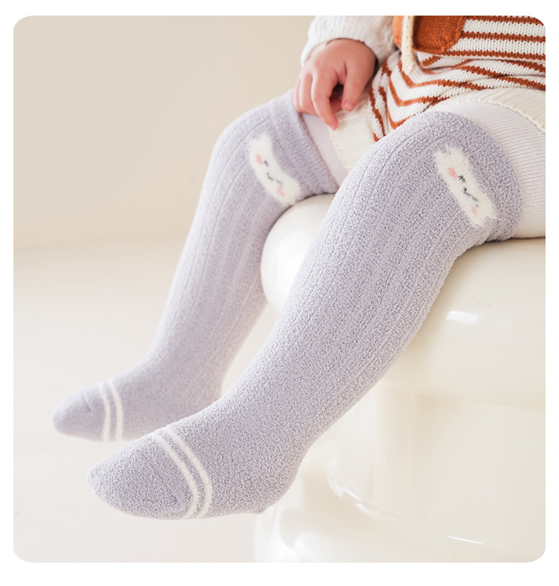 가을과 겨울 기모 두꺼운 아기 따뜻한 스타킹 신생아 무릎 양말 소년과 소녀 귀여운 산호 양털 면화 양말