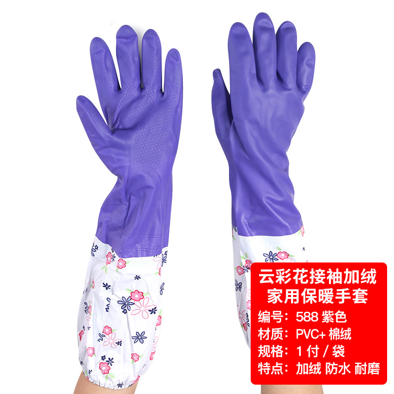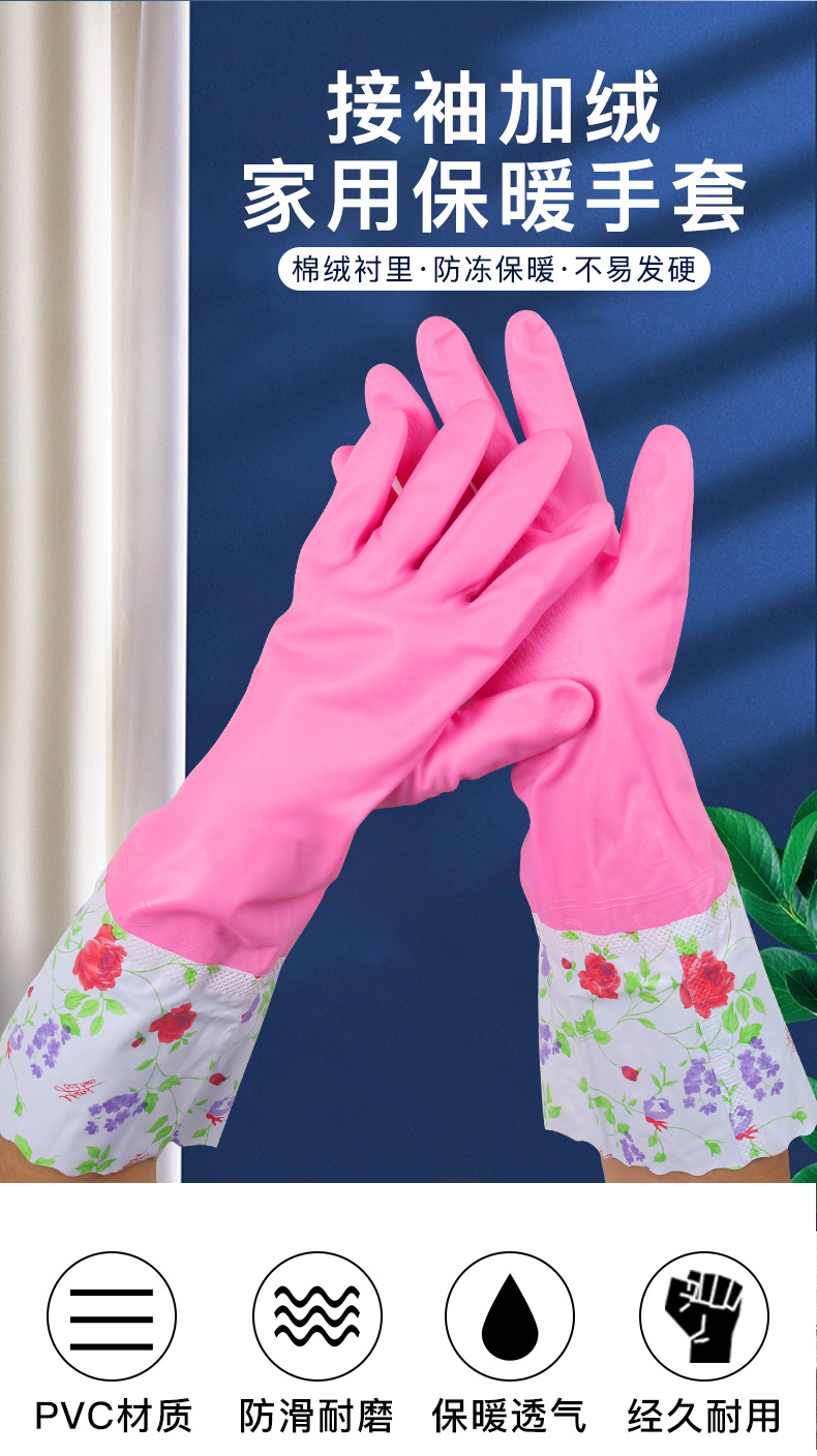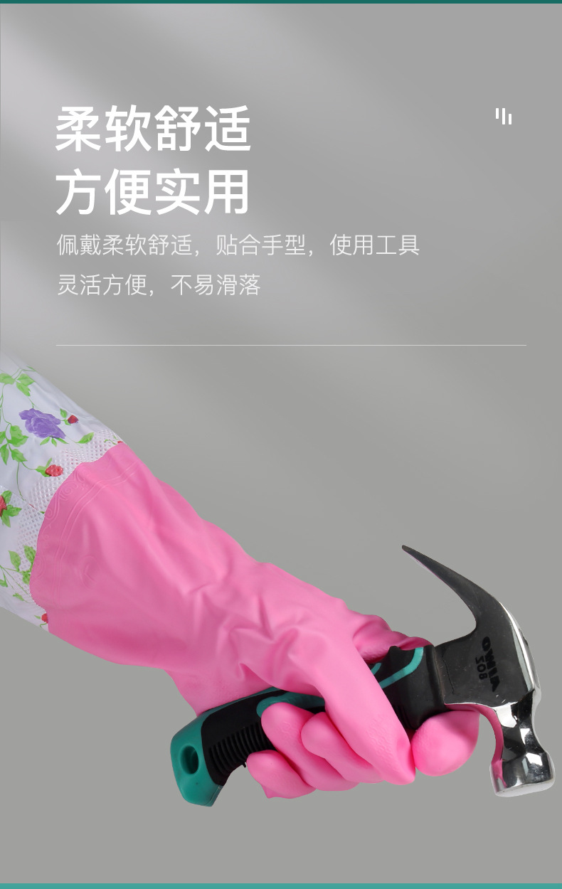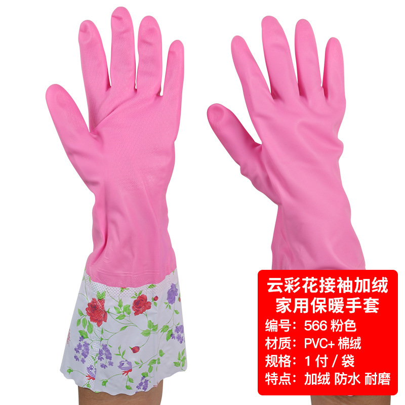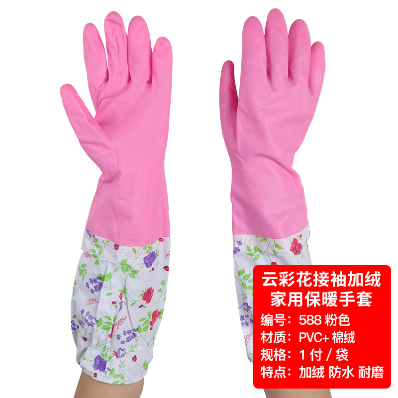 도매 가정용 라텍스 장갑 구름 꽃 소매 기모 가정용 두꺼운 방수 및 내유성 주방 청소 장갑