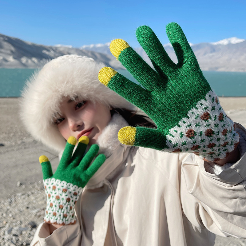 7 색 캔디 컬러 장갑 여자의 겨울 사이클링 방한 따뜻한 기모 두꺼운 터치 스크린 니트 울 장갑