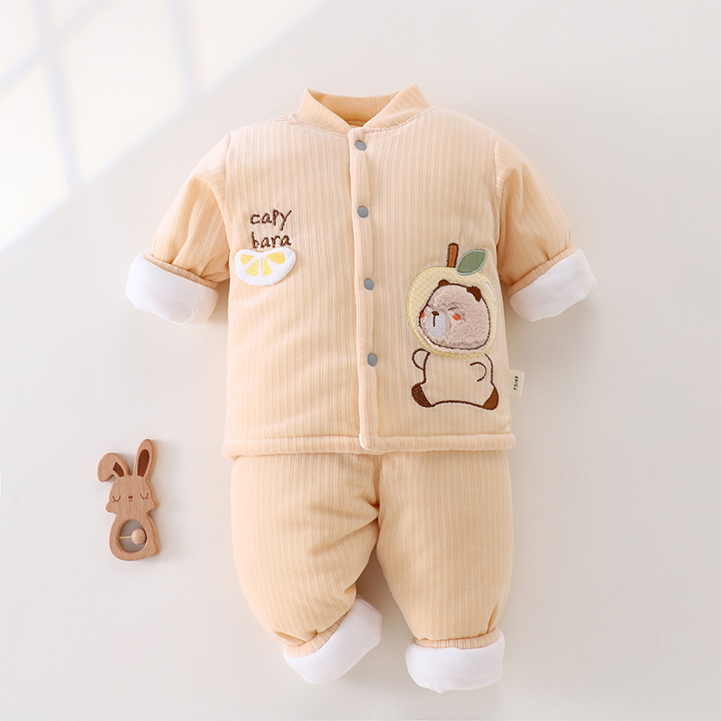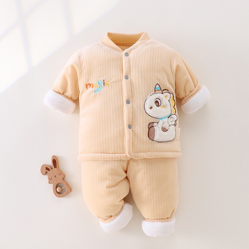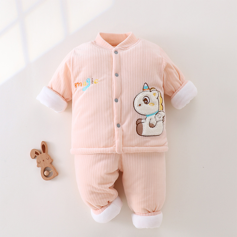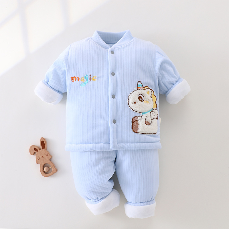 가을 겨울 아기 두꺼운 보온 속옷 세트 0-1세 가디건 유아 겨울 누빔 얇은 솜옷 신생아 의류