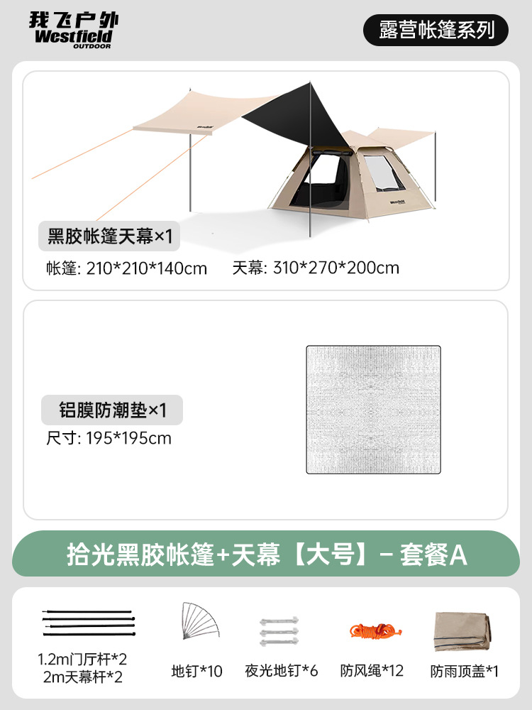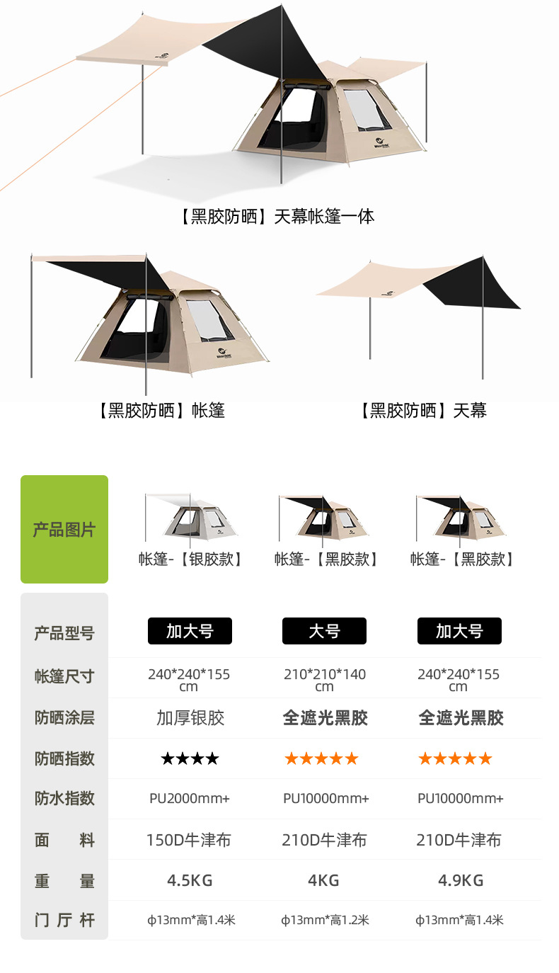 • 2.4M 초대형 [검은 고무 텐트 검은 고무 캐노피] [방습 매트]]