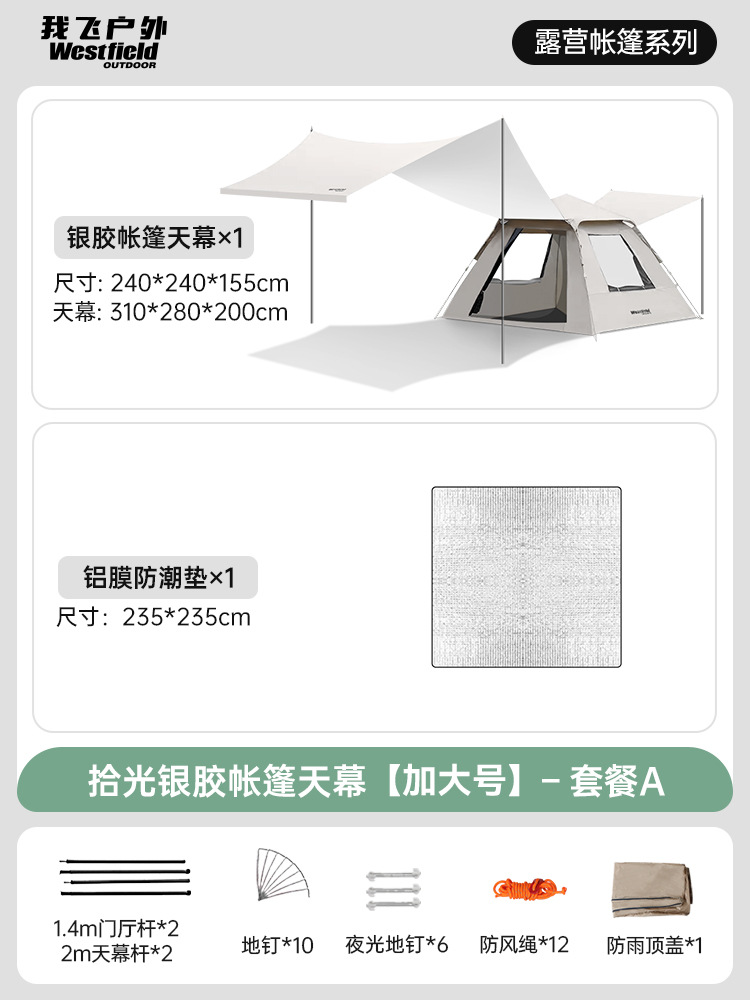 • 2.4M 초대형 [실버 고무 텐트 실버 고무 캐노피] [방습 매트]]