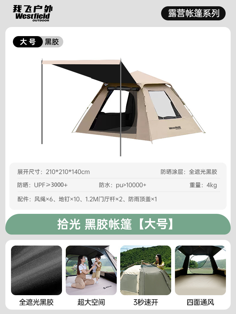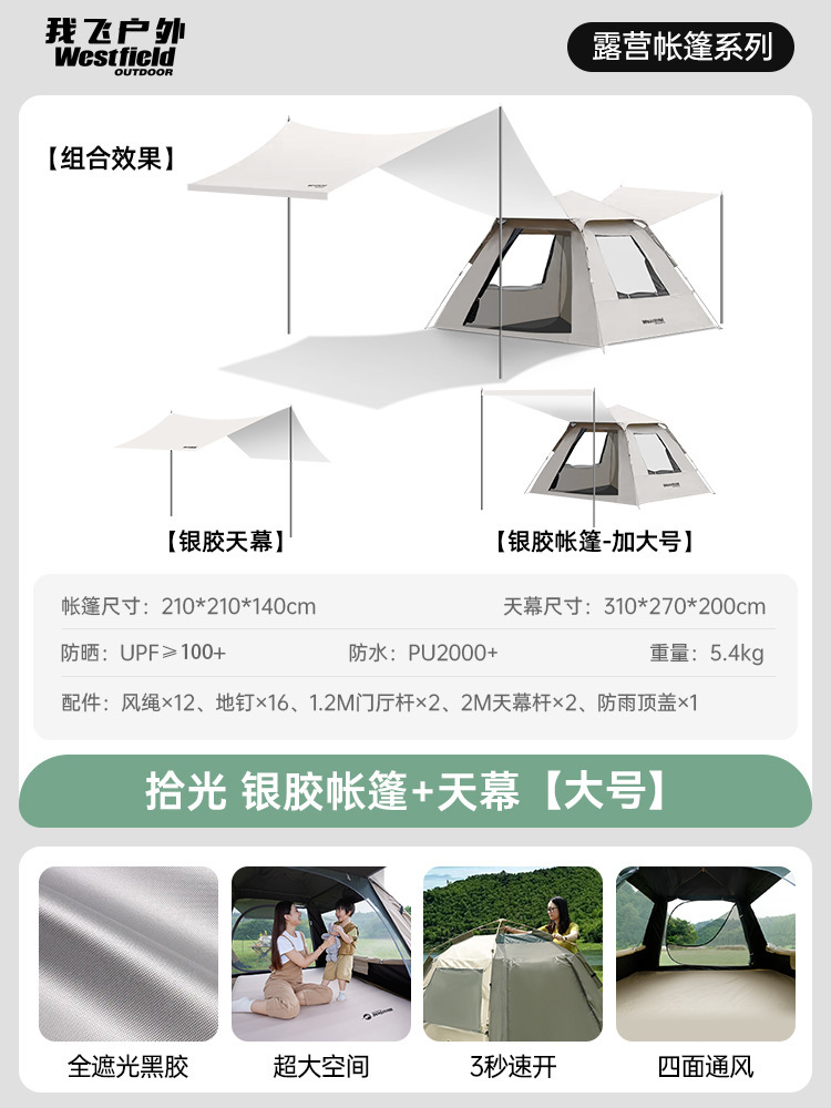 웨스트 필드 나는 야외 텐트 캐노피를 비행 2-in -1 휴대용 접이식 자동 비닐 캠핑 텐트