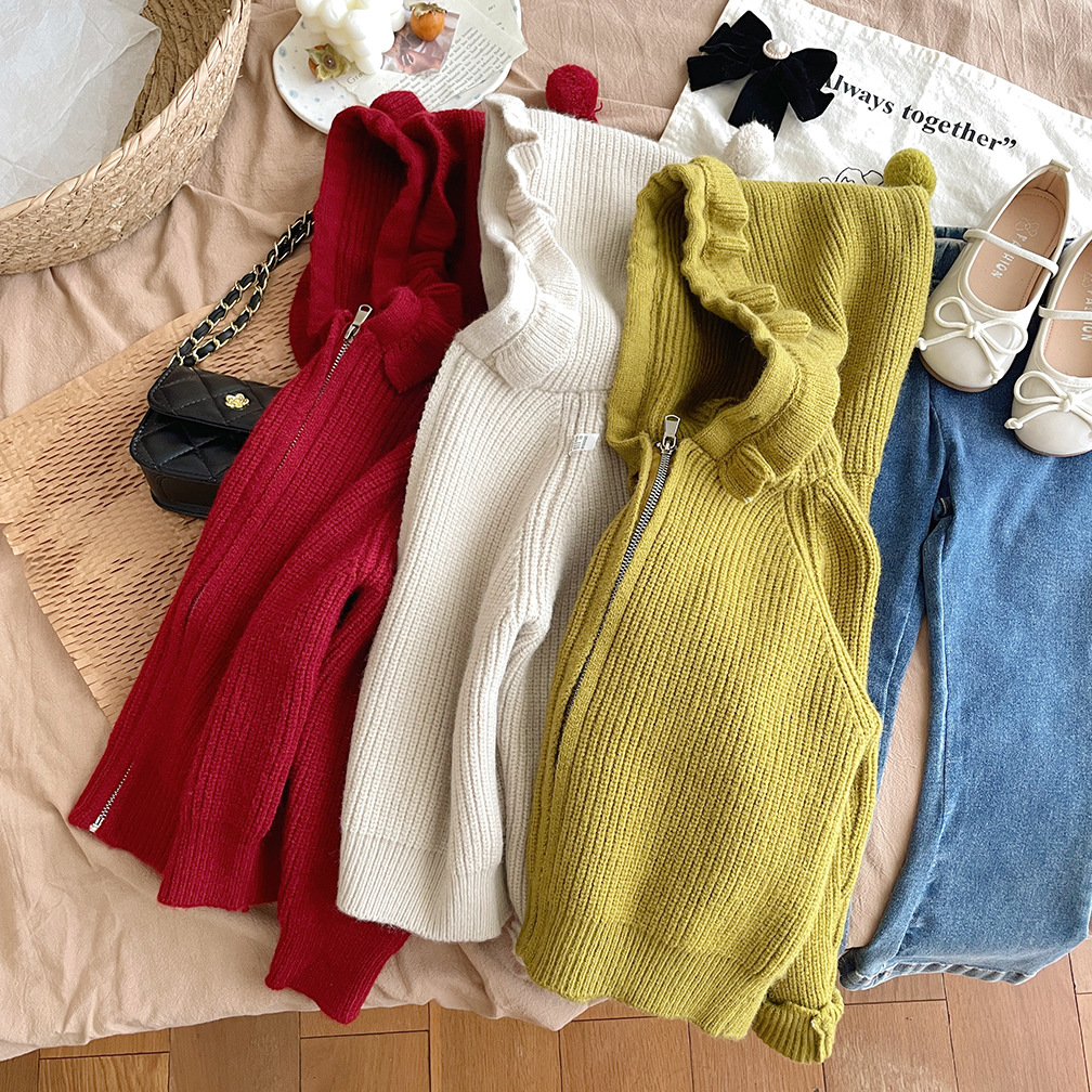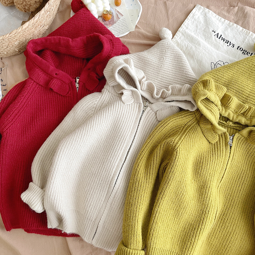 여아 카디건 스웨터 2025 가을 겨울 신상 아동 스타일 후드티 베이비 긴팔 다용도 아우터 니트 스웨터 트렌디