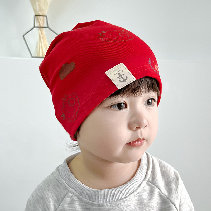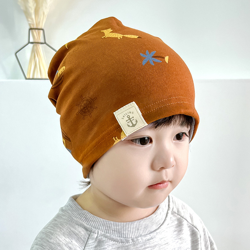 새로운 단층 면화 어린이 모자 봄과 가을 얇은 아기 풀오버 캡 가을과 겨울 소년 소녀 귀 보호 보트 앵커 캡스토어 가기