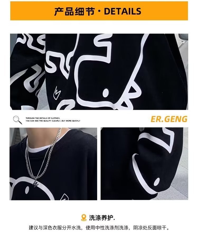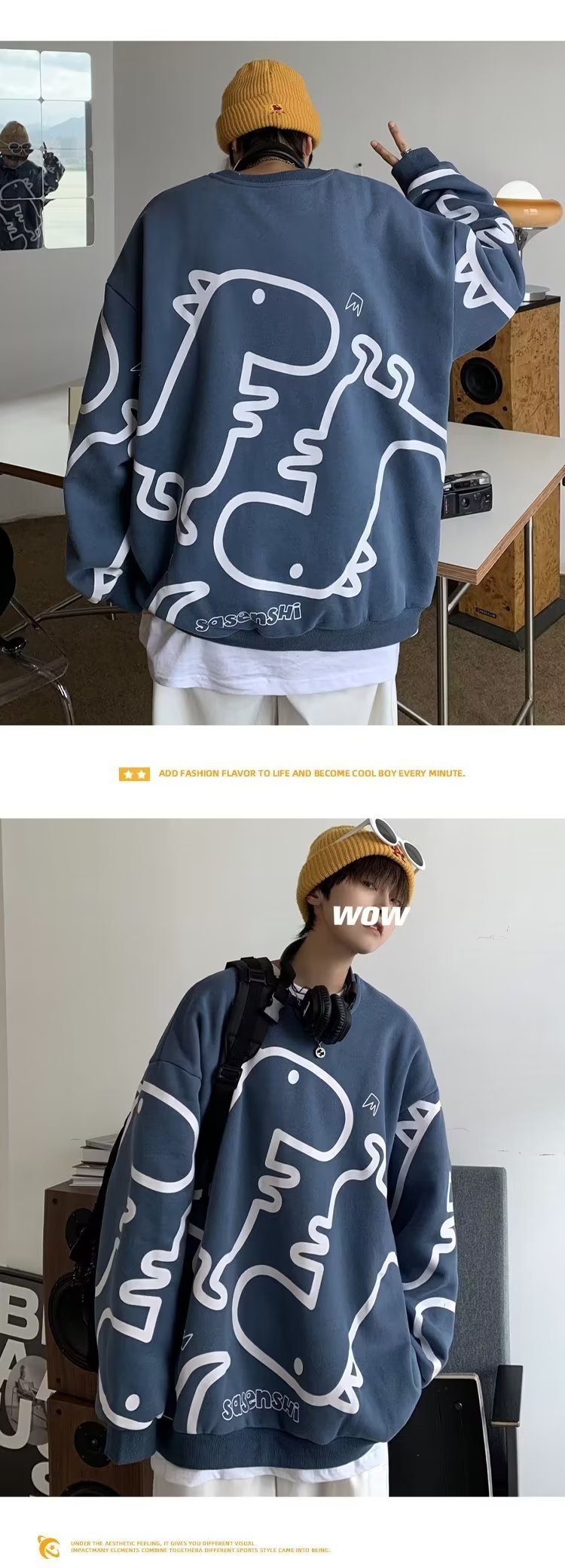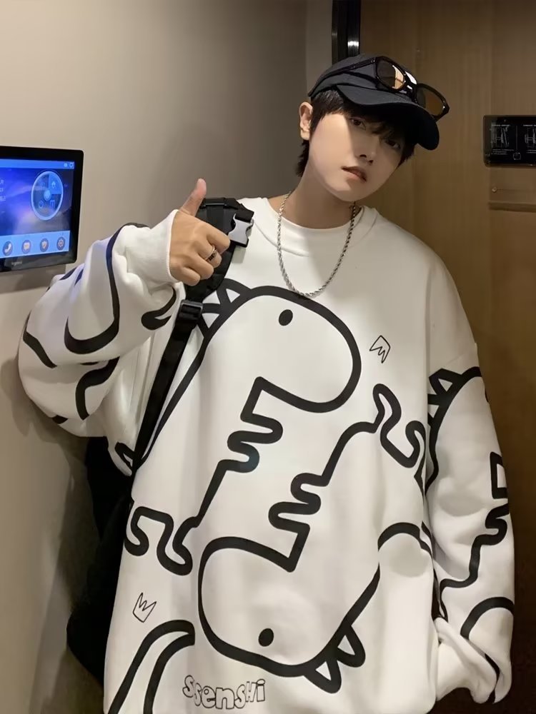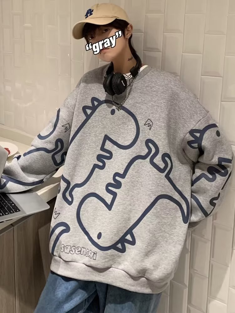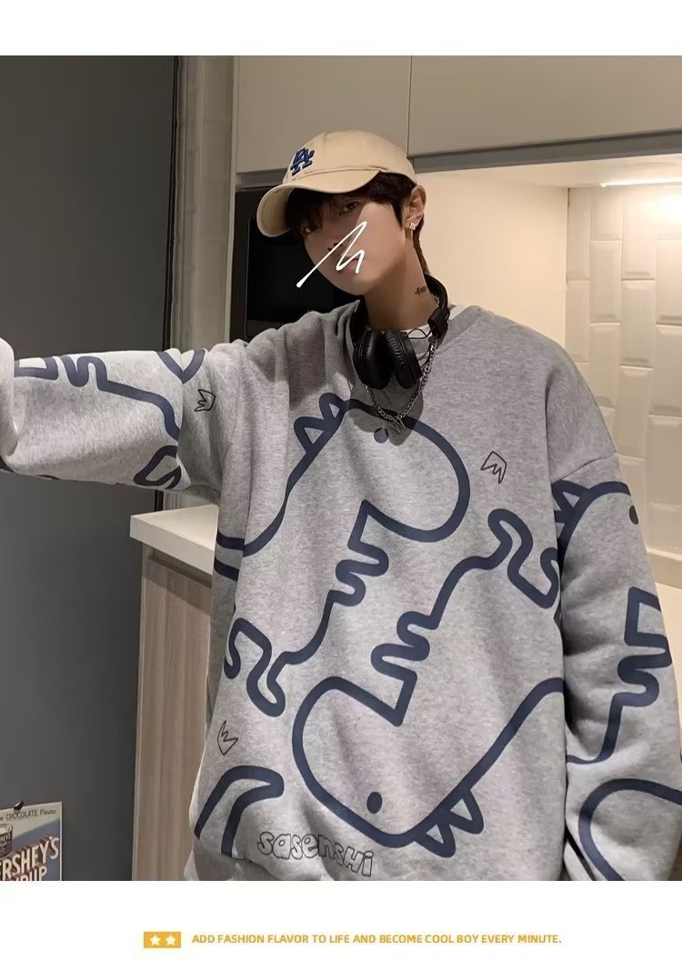크루넥 스웨터 남자의 2023 봄과 가을 느슨한 플러스 사이즈 패션 틈새 하이 스트리트 탑 유행 브랜드 풀오버 재킷스토어 가기