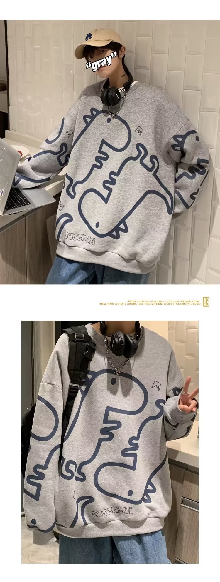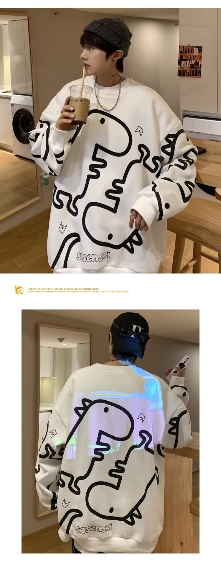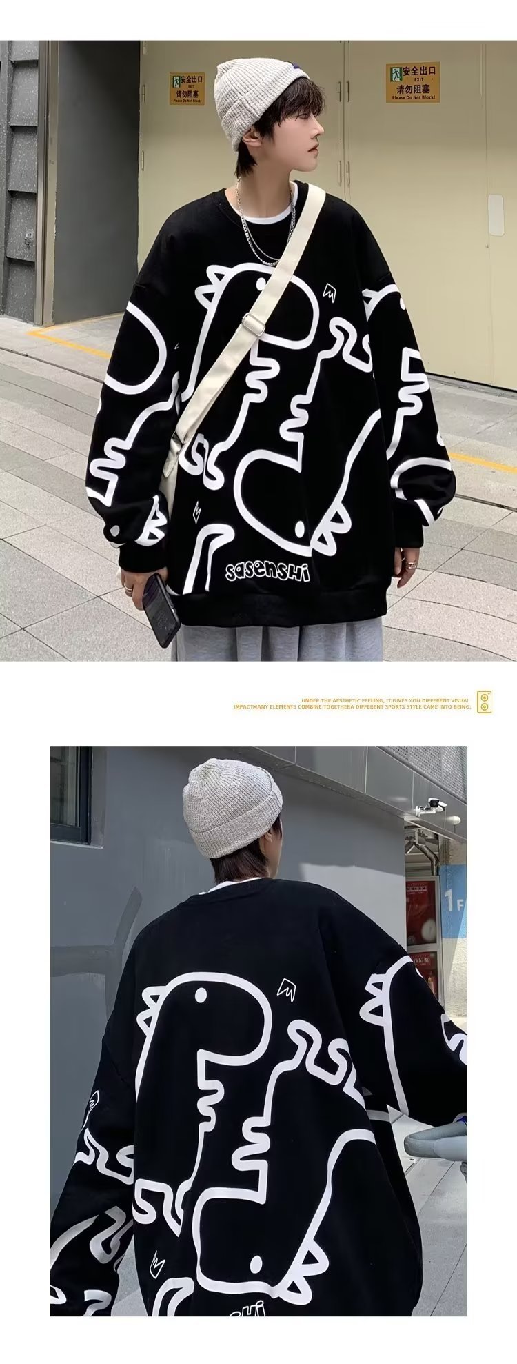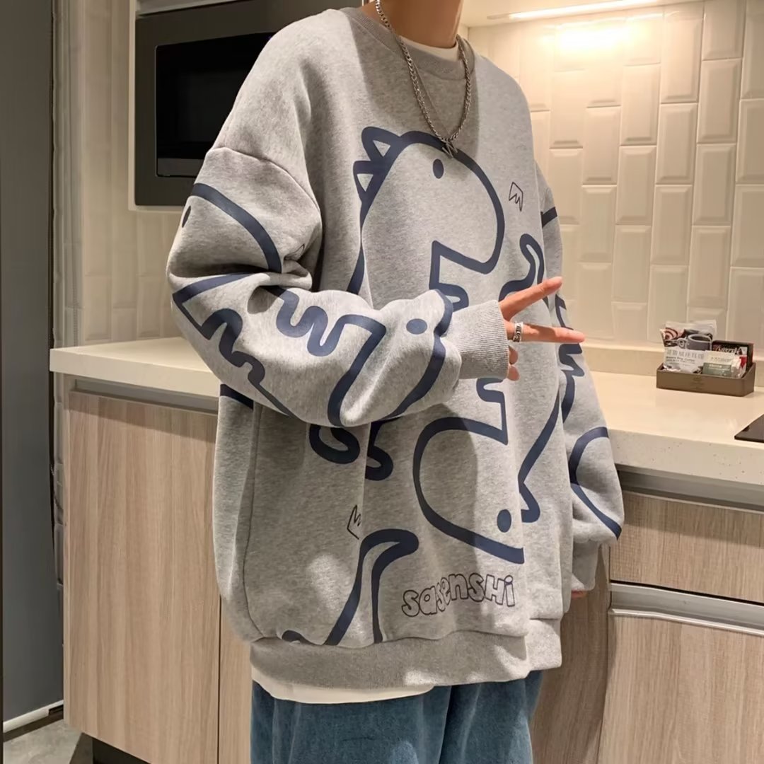 크루넥 스웨터 남자의 2023 봄과 가을 느슨한 플러스 사이즈 패션 틈새 하이 스트리트 탑 유행 브랜드 풀오버 재킷스토어 가기