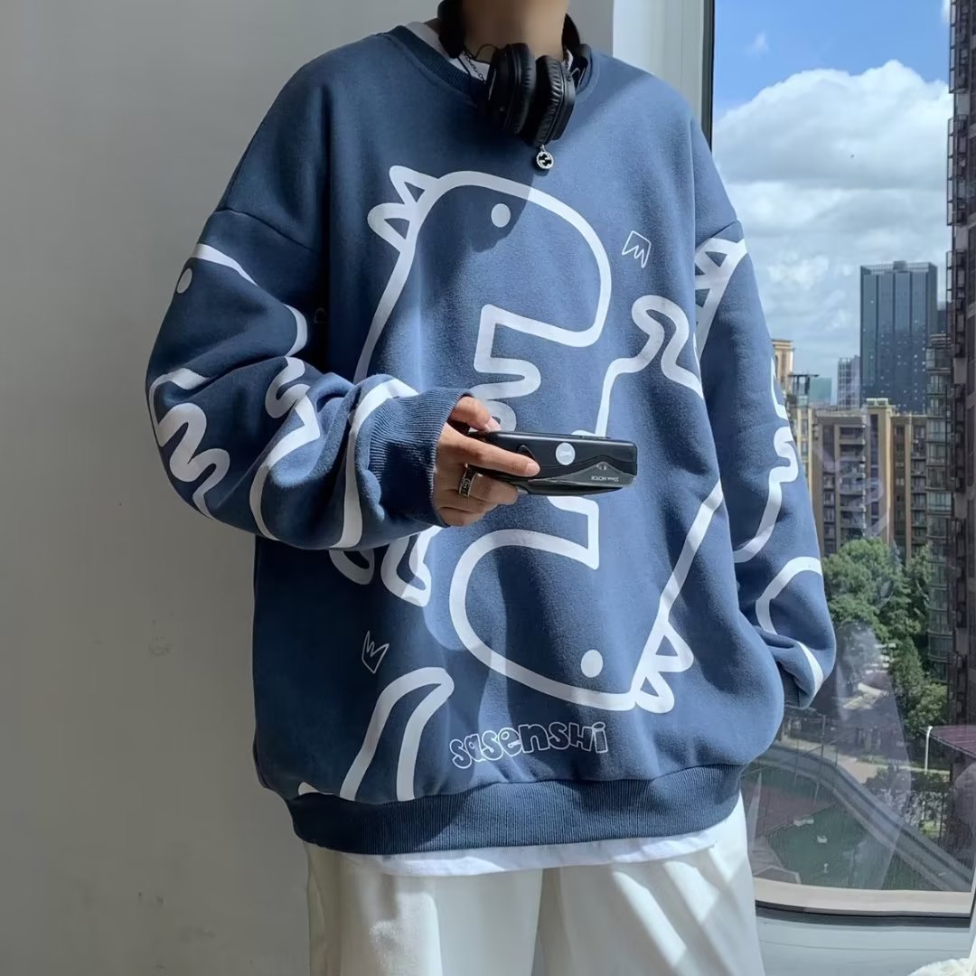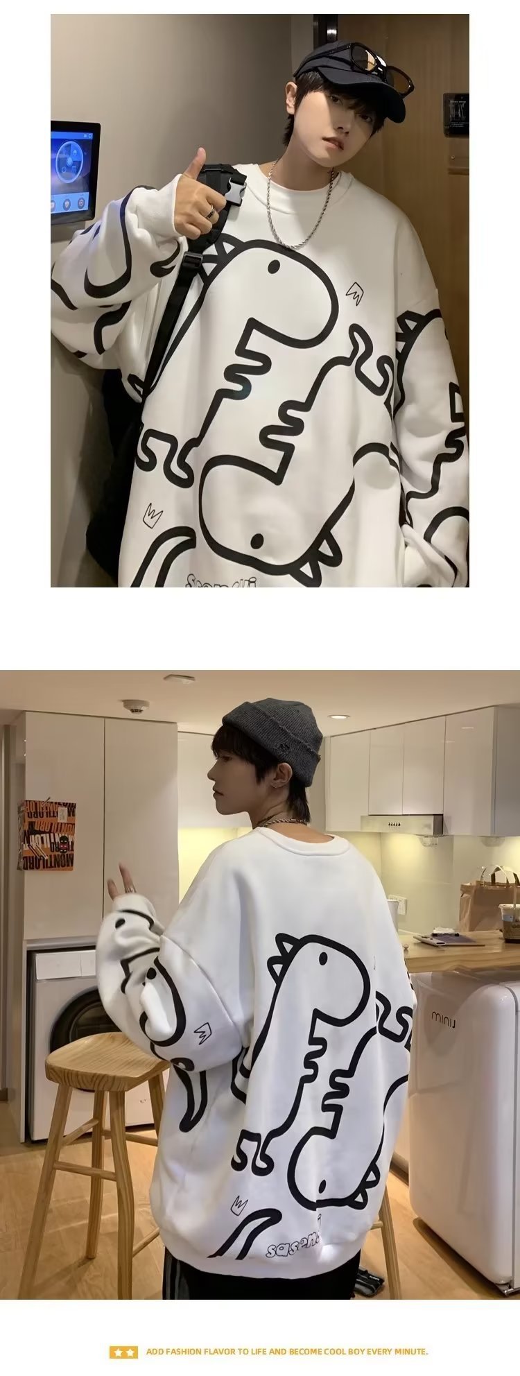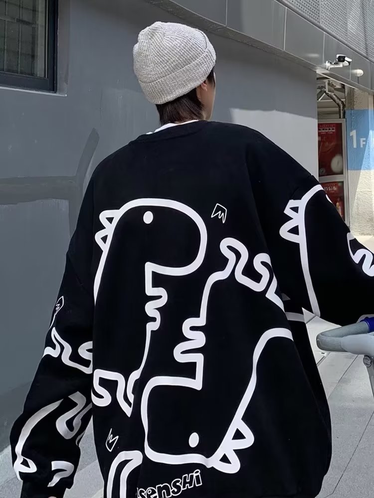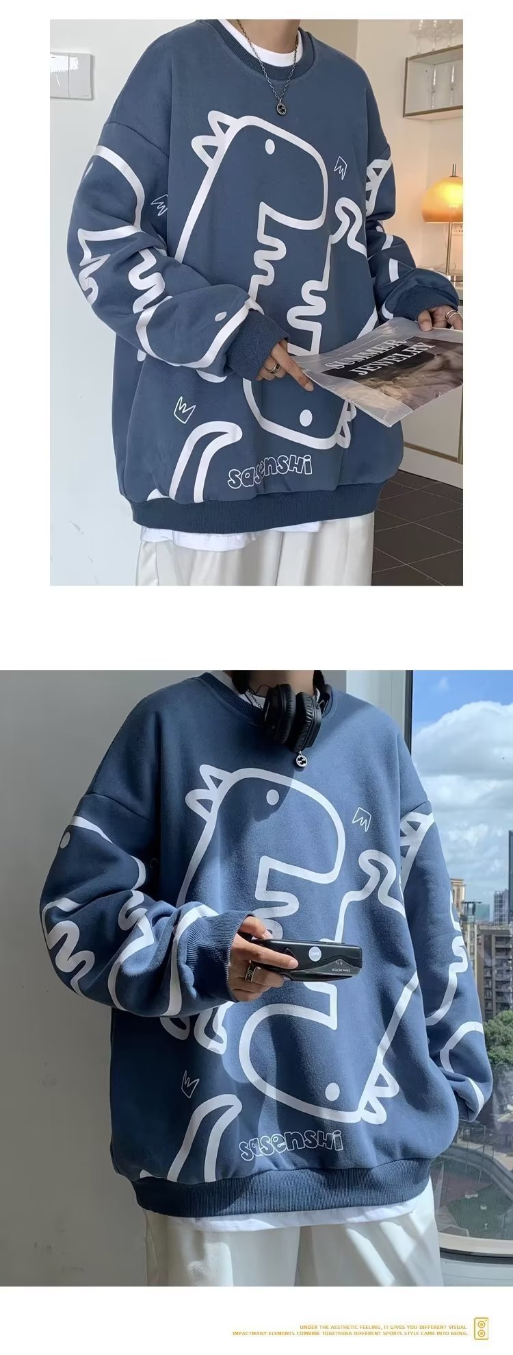 크루넥 스웨터 남자의 2023 봄과 가을 느슨한 플러스 사이즈 패션 틈새 하이 스트리트 탑 유행 브랜드 풀오버 재킷스토어 가기