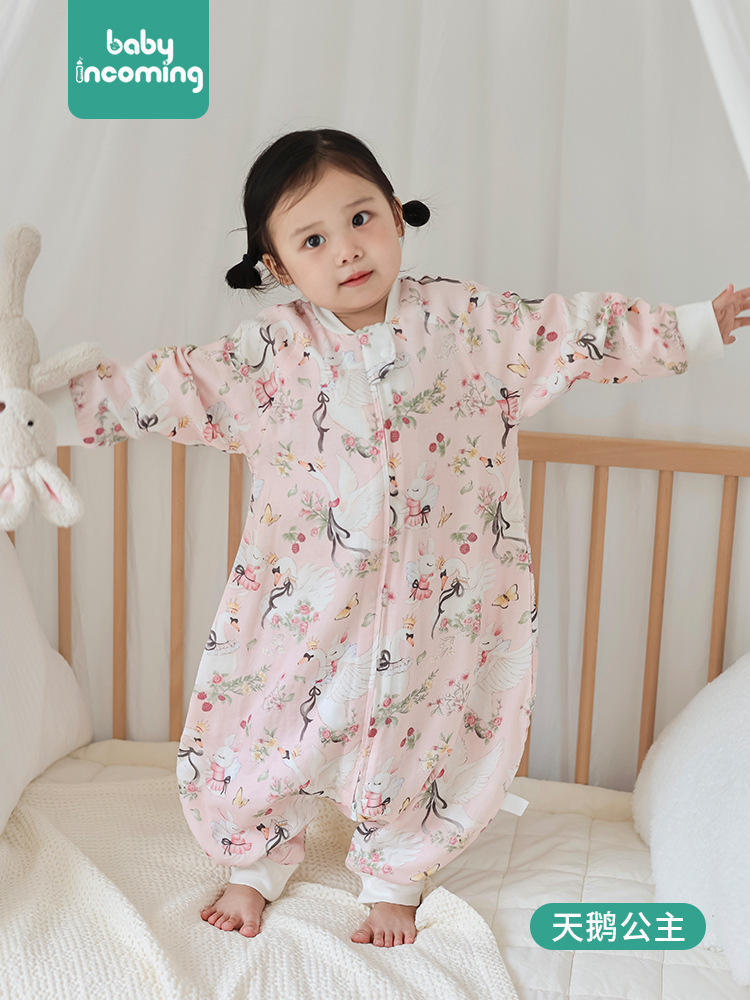 4겹 6겹 대나무 면 거즈 잠옷 만화 캐릭터 분리형 다리 잠옷 가을 겨울 아기 방수 이불 어린이 침낭스토어 가기