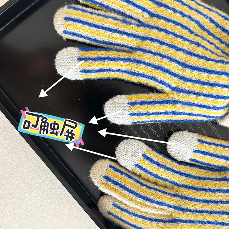커플 장갑 여성용 겨울 따뜻한 일본 양모 컬러 매칭 스트라이프 터치 스크린 사이버 연예인 사이클링 방한 목 학생 남성스토어 가기