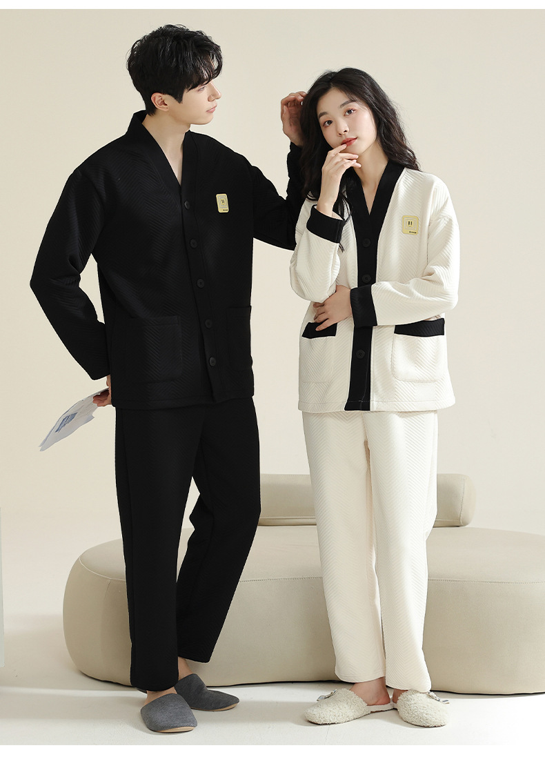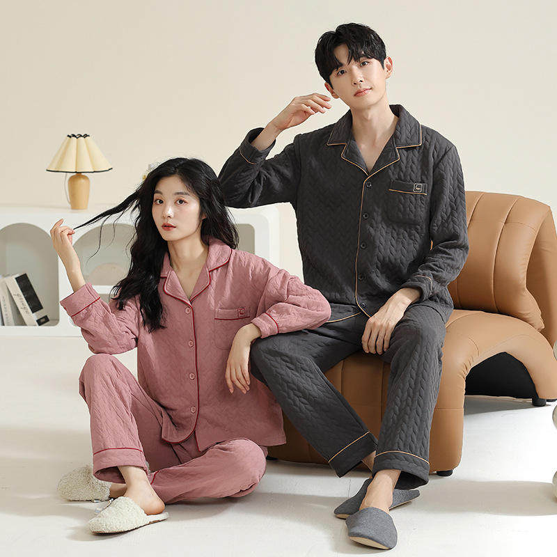 남자와 여자를위한 커플 잠옷 봄과 가을 두꺼운 면 긴 소매 겨울 얇은 샌드위치 면 공기 면 가정 옷 가을과 겨울