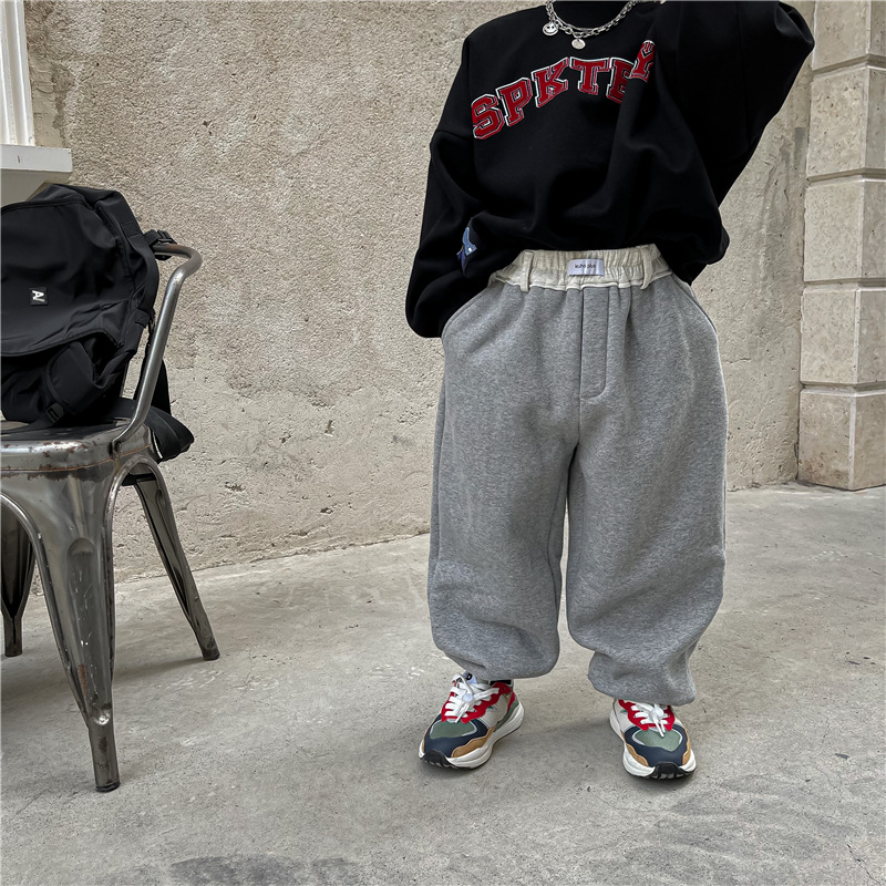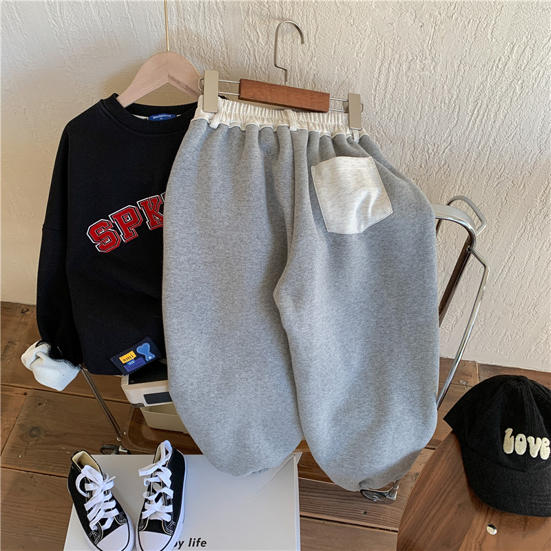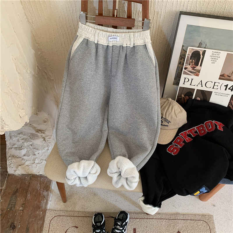 Baoduo 아동복 남아 바지 기모 2023 가을/겨울 새로운 중간 어린이 바지 캐주얼 바지 어린이 서양 스타일 스포츠 바지