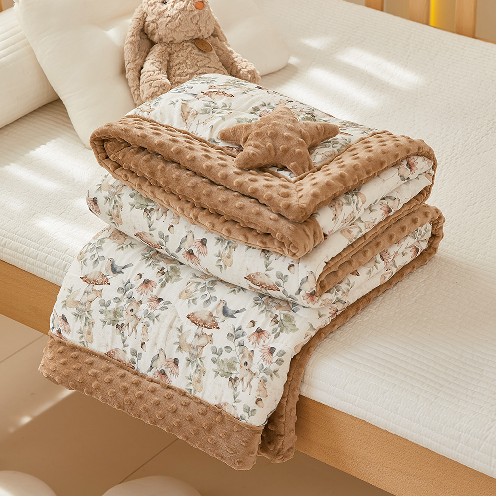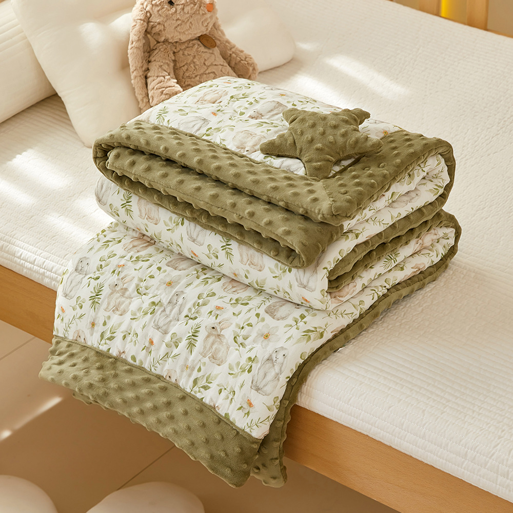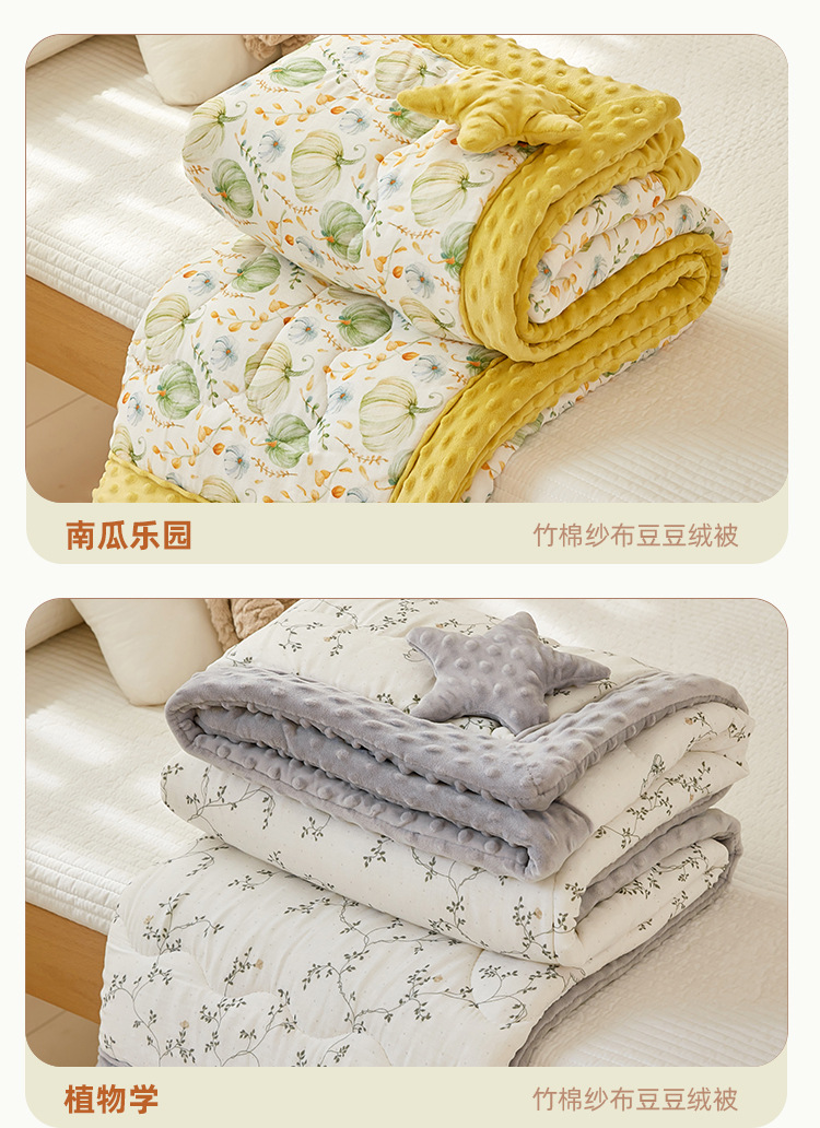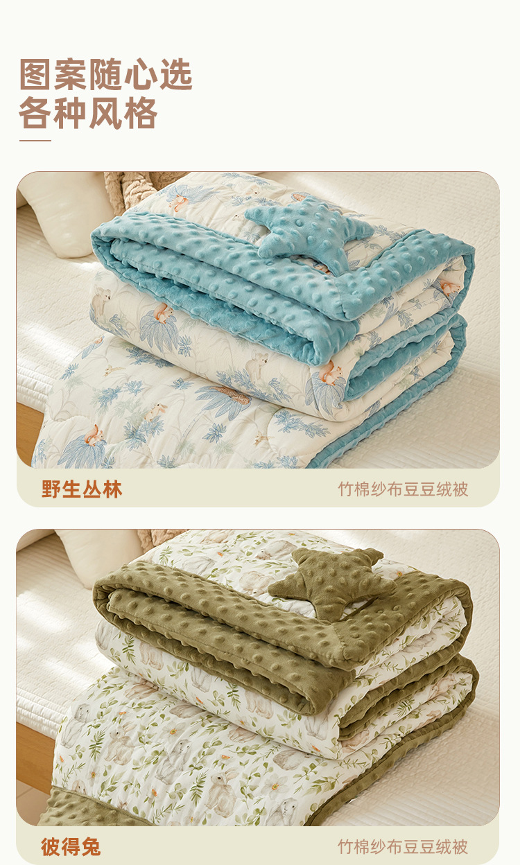 오리지널 모자 유아 학년 클래스 A 대나무 섬유 완두콩 벨벳 어린이 이불 대두 인쇄 대나무 면 가을과 겨울 유치원 두꺼워스토어 가기