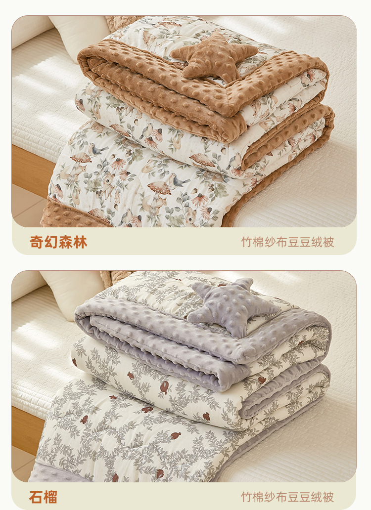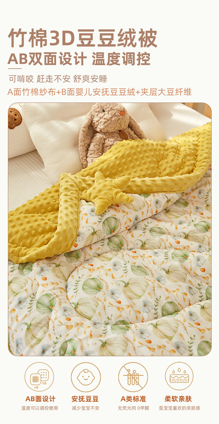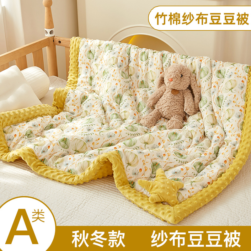 오리지널 모자 유아 학년 클래스 A 대나무 섬유 완두콩 벨벳 어린이 이불 대두 인쇄 대나무 면 가을과 겨울 유치원 두꺼워