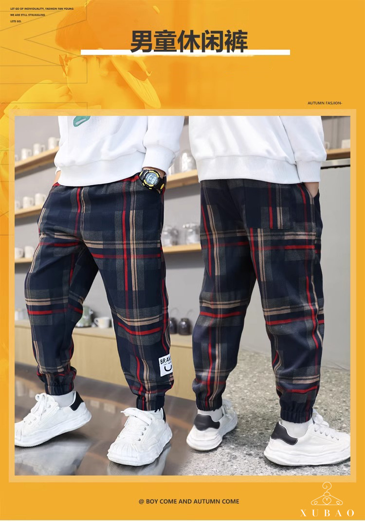 봄과 가을 아이들의 유행 스타일 느슨한 캐주얼 격자 무늬 바지 운동복 기모 소년과 소녀를위한 두꺼운 따뜻한 스포츠 바지스토어 가기