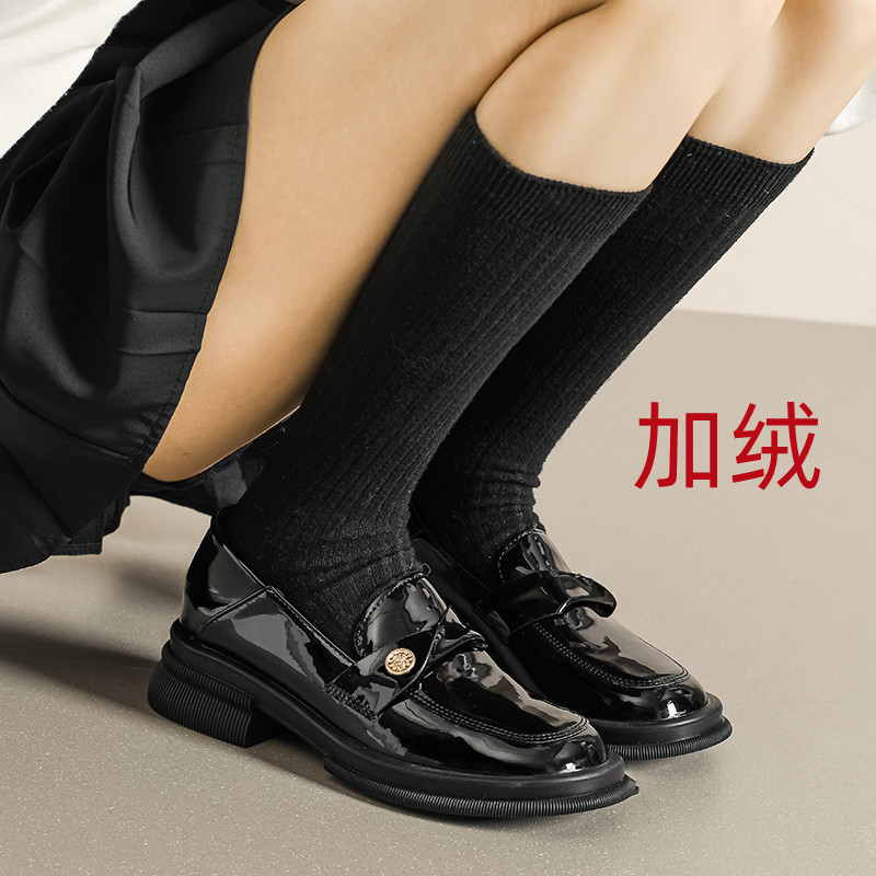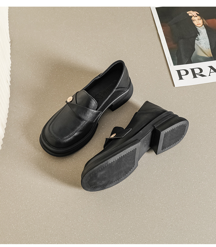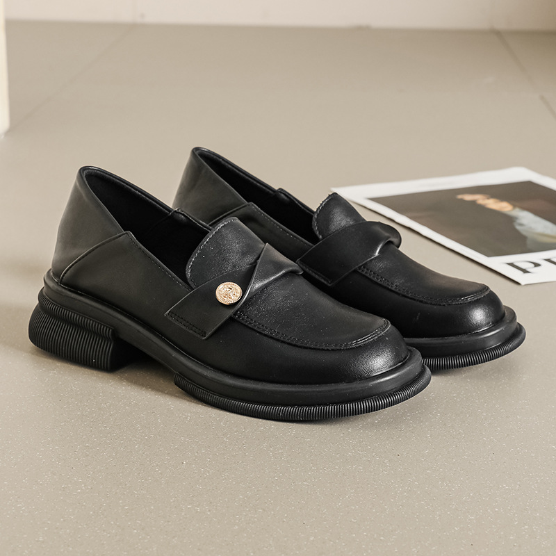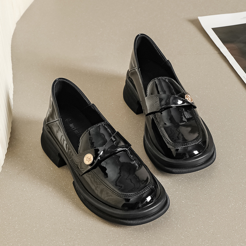내부 높이 증가 작은 금화 두꺼운 밑창 밟는 발 뒤꿈치 게으른 두꺼운 뒤꿈치 로퍼 여성의 작은 가죽 신발