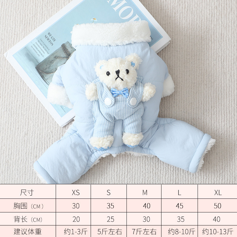 몰타 겨울 부동액 따뜻한 네 발 스냅 스트랩 귀여운 곰 봉제 애완 동물 캐주얼 한국 코트