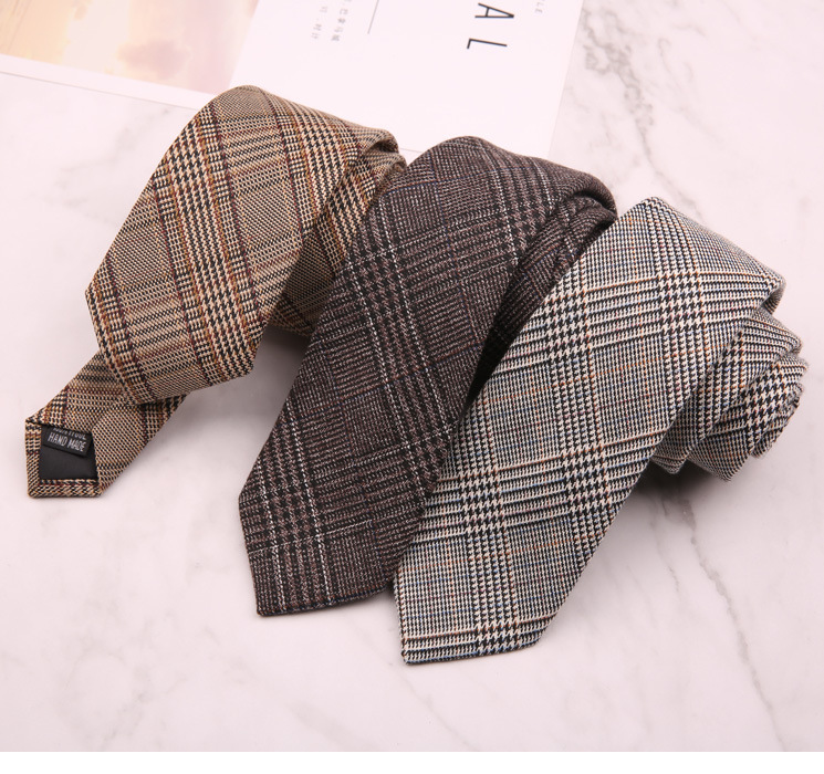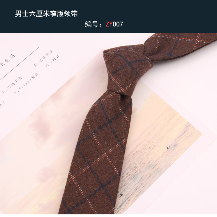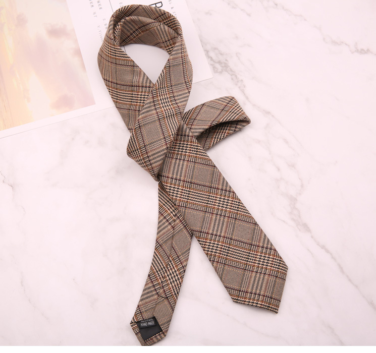남성과 여성 학생을위한 다크 브라운 복고풍 격자 무늬 일본 다크 브라운 넥타이 대학 스타일 유행 6cm 패션 좁은 넥타이스토어 가기