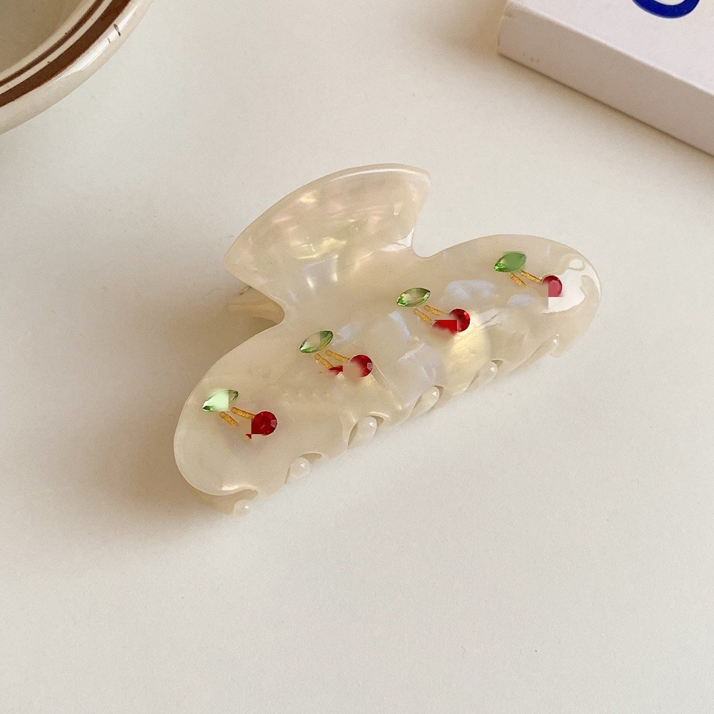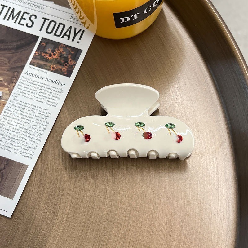 우아한 간단한 우아한 체리 플래시 다이아몬드 잡아 클립 여자의 머리 뒤 머리 클립 중간 상어 클립 머리핀 머리 액세서리스토어 가기