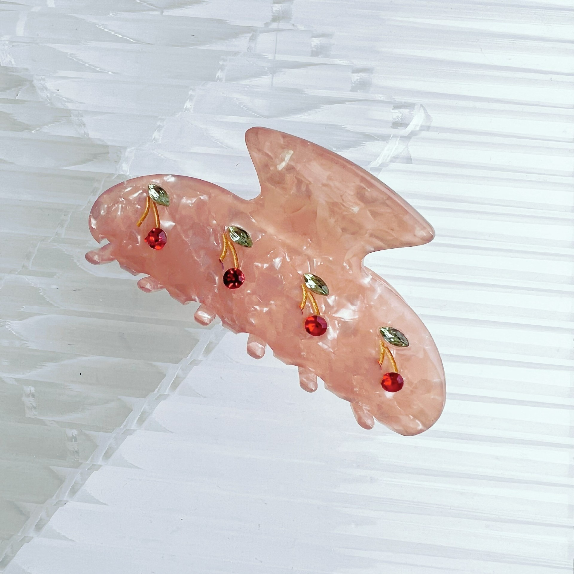 우아한 간단한 우아한 체리 플래시 다이아몬드 잡아 클립 여자의 머리 뒤 머리 클립 중간 상어 클립 머리핀 머리 액세서리