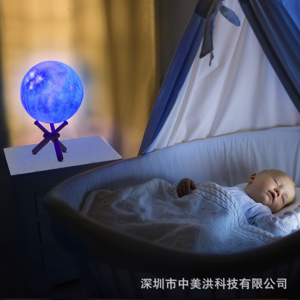 핫 크로스 보더 핫 3D 스타 조명 색칠 다채로운 야간 조명 침실 침대 옆 창조적 인 led 분위기 달 조명