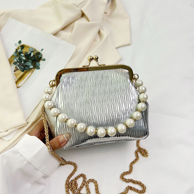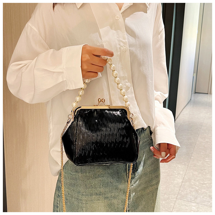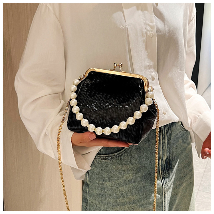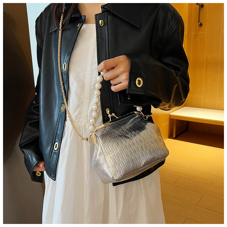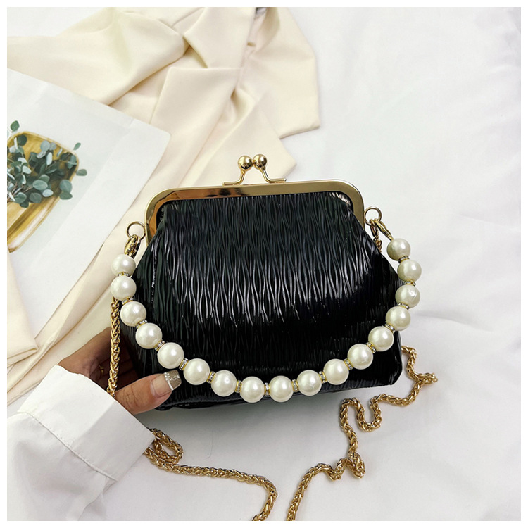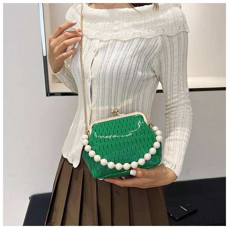 진주 가방 여성용 2023 새로운 패션 체인 크로스 바디 백 질감 크로스 바디 쉘 백 단색 인기 가방스토어 가기