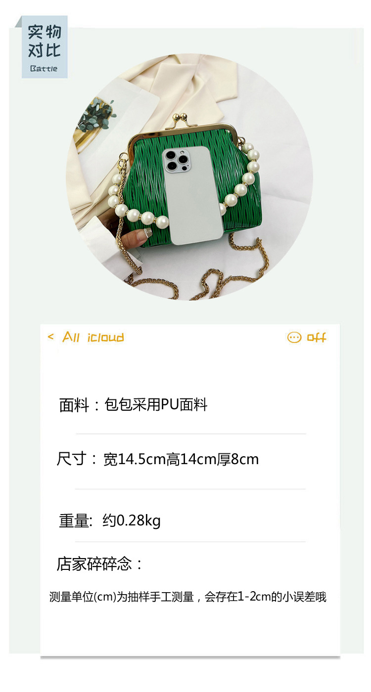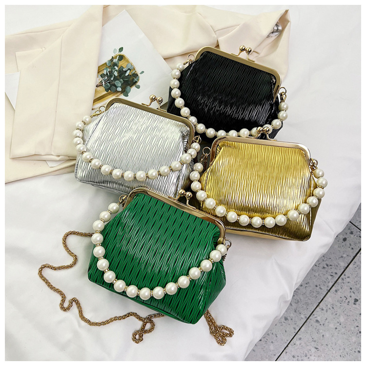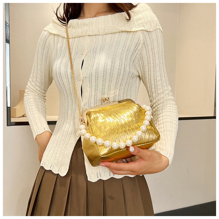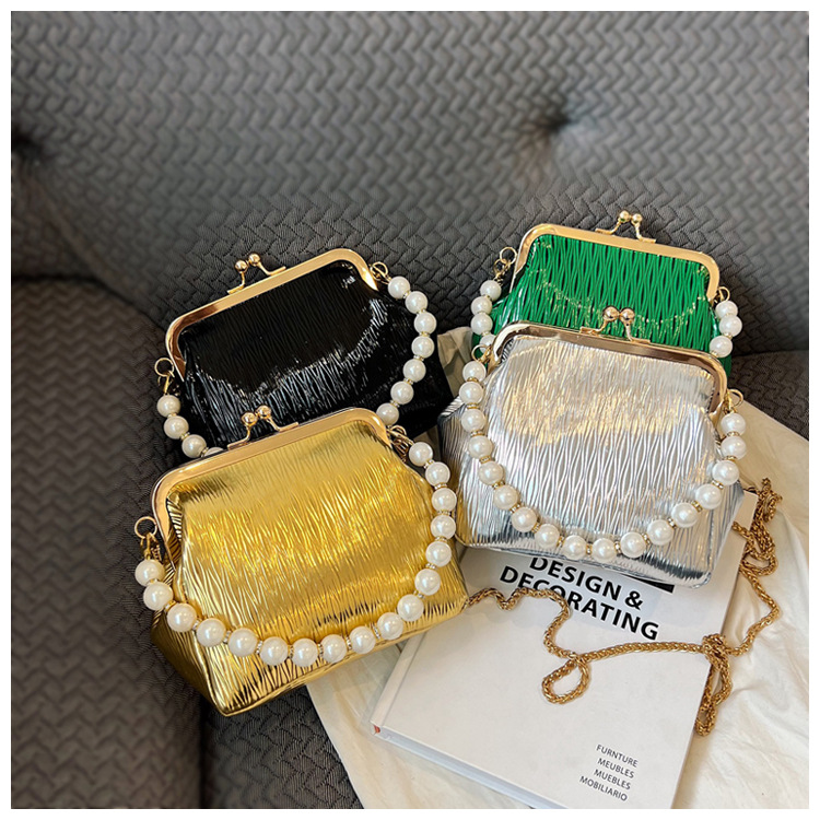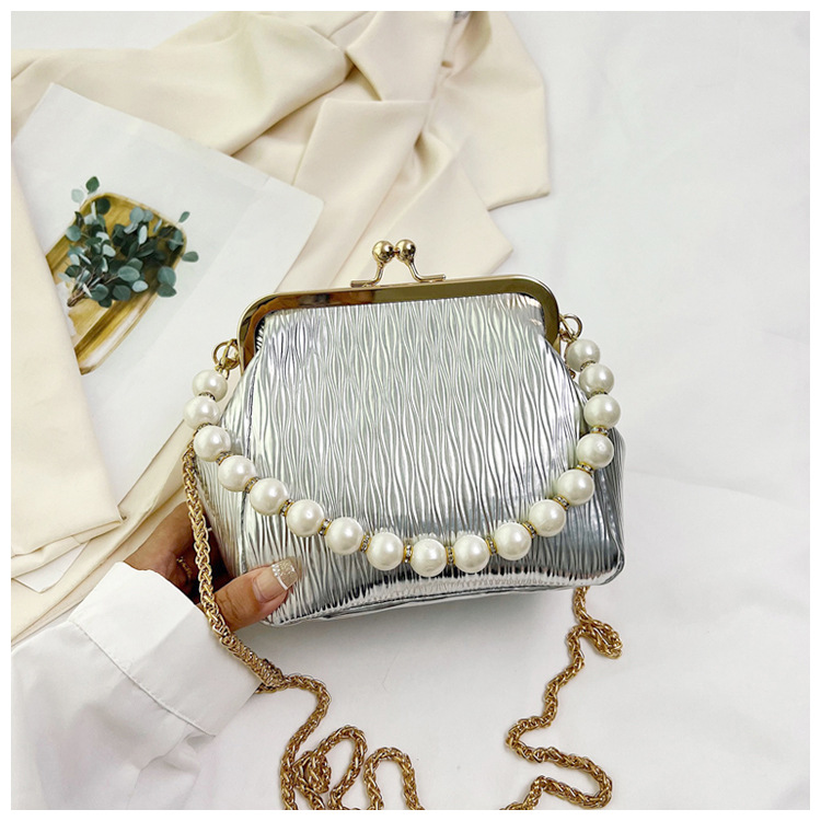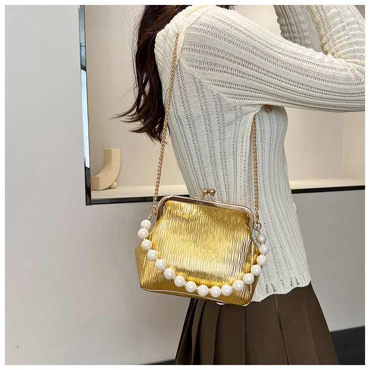 진주 가방 여성용 2023 새로운 패션 체인 크로스 바디 백 질감 크로스 바디 쉘 백 단색 인기 가방스토어 가기