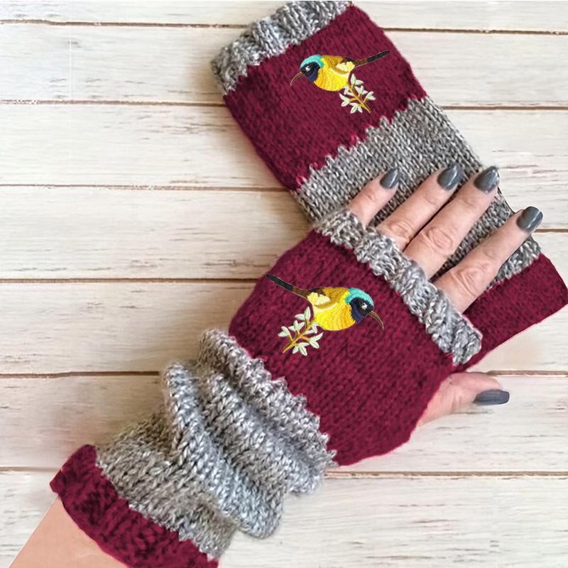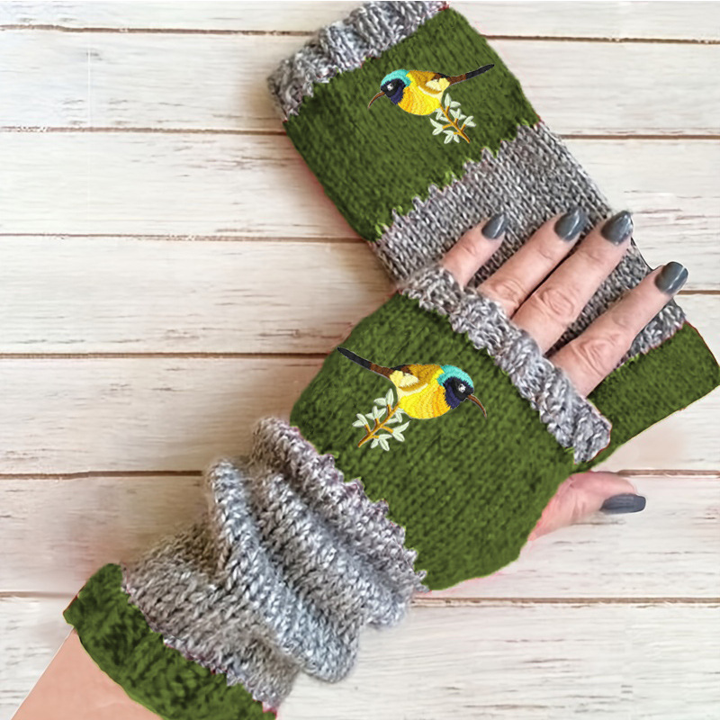 크로스 보더 아마존 가을과 겨울 새로운 여성용 니트 장갑 새 자수 오픈 핑거 따뜻한 방한 울 장갑