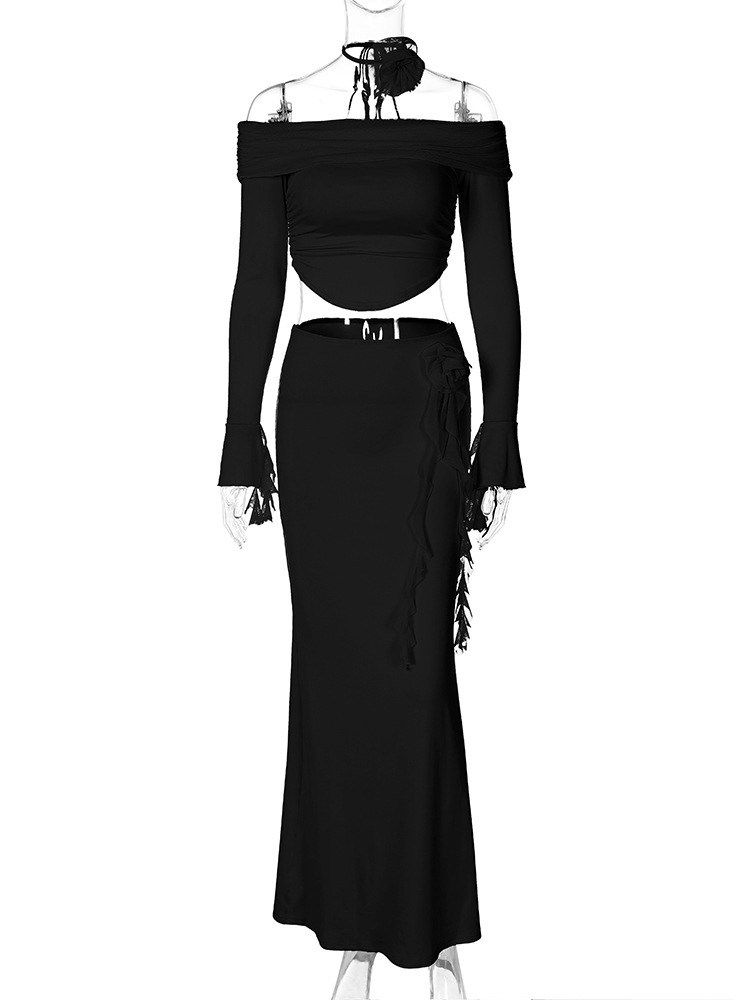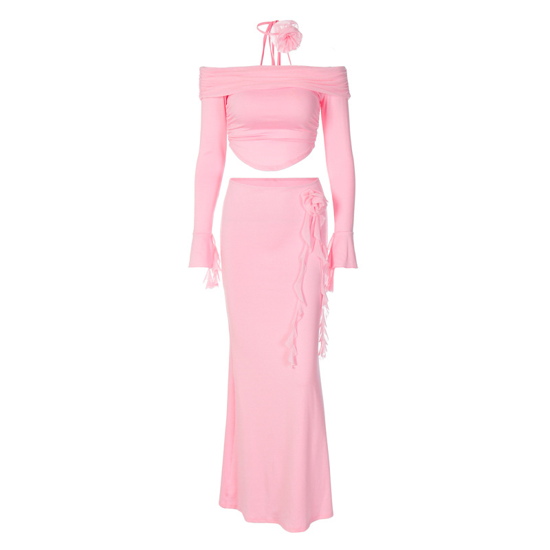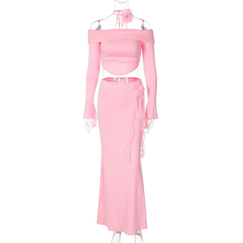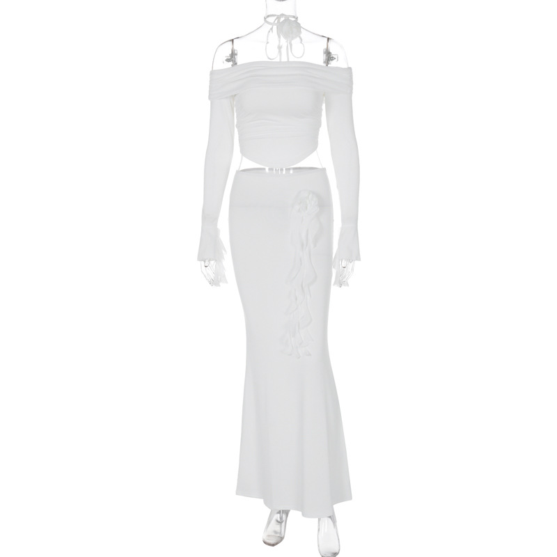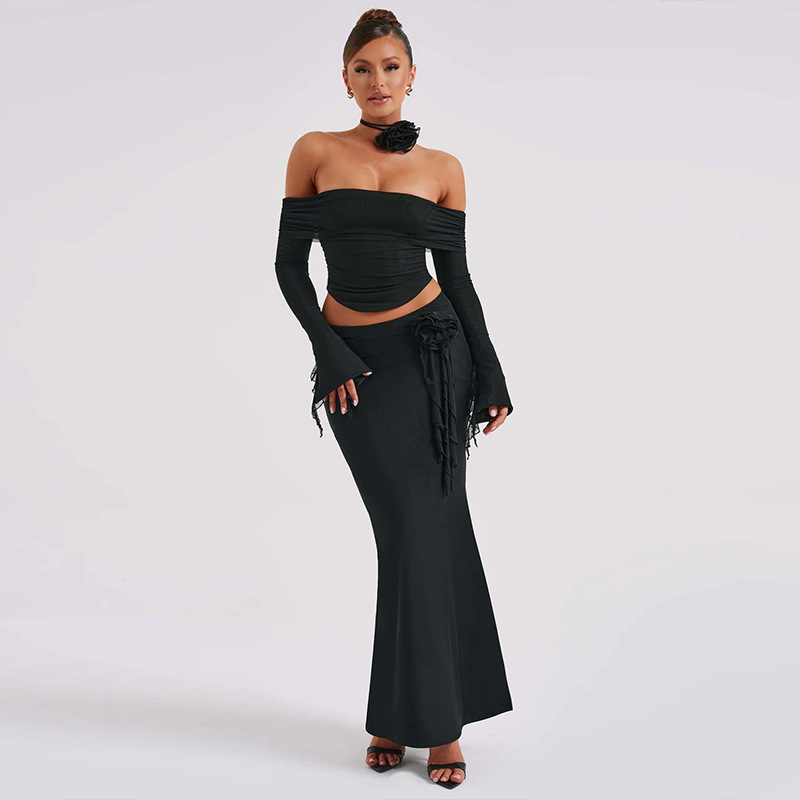 아마존 여성 의류 2025 봄 여름 새로운 패션 섹시한 튜브 탑 긴팔 탑 슬림 스커트 정장 도매스토어 가기