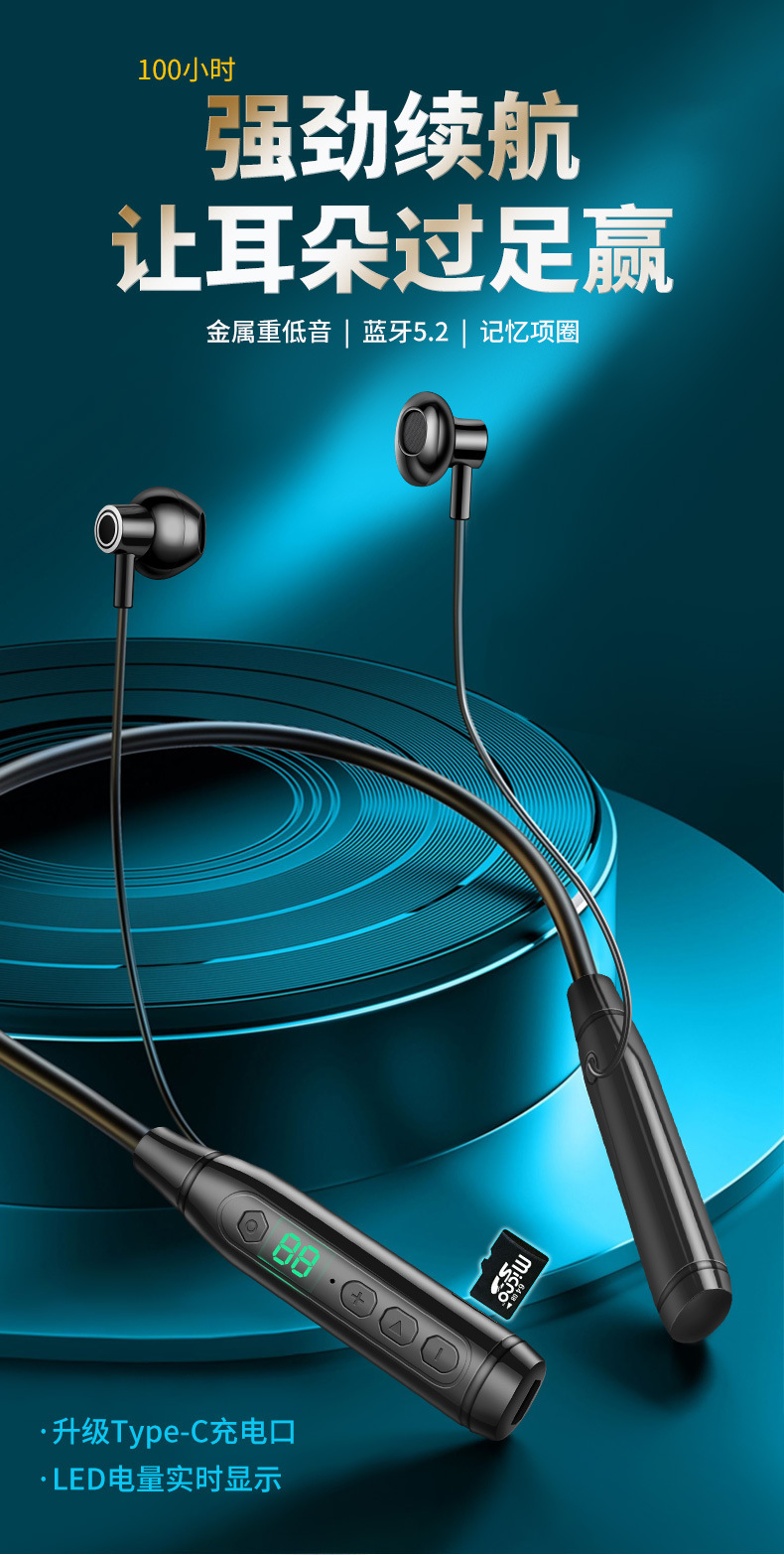 러닝용 블루투스 이어폰, 목걸이형, 듀얼 이어폰, 세미 인이어, 핸즈프리, 소음 감소, 방수 디자인, 무선