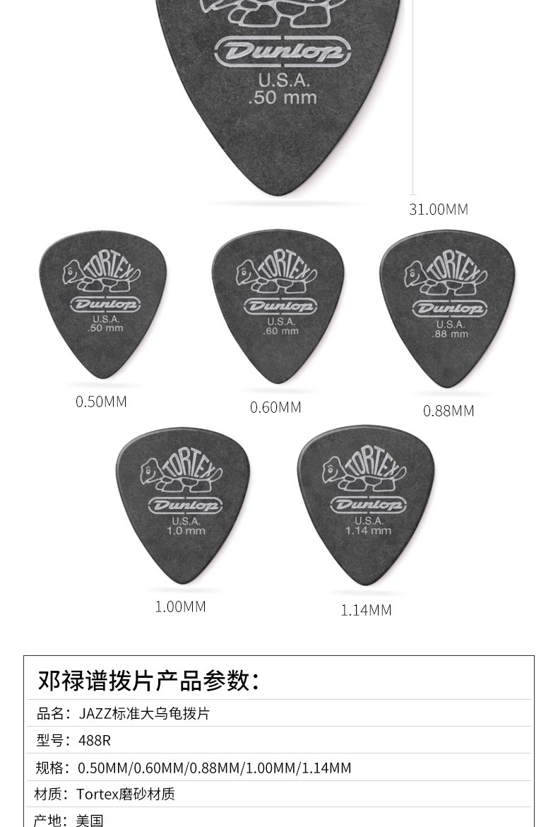 Dunlop Dunlop 488R 재즈 속도 탄성 미끄럼 방지 표준 검은 작은 거북 기타 픽 파편 정품
