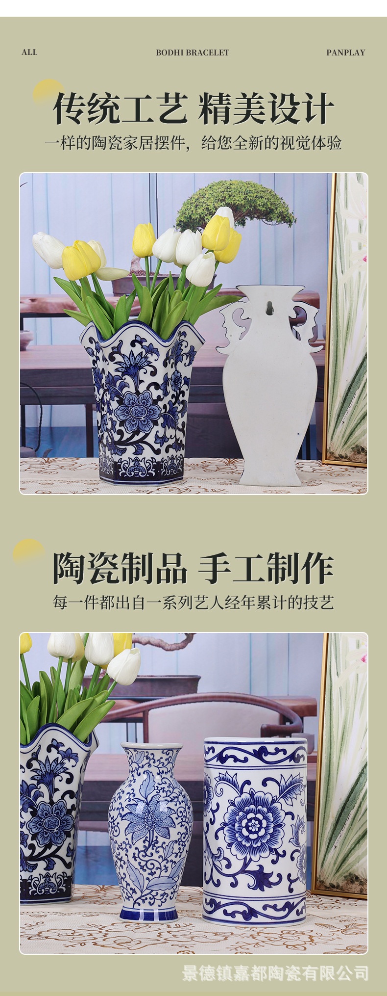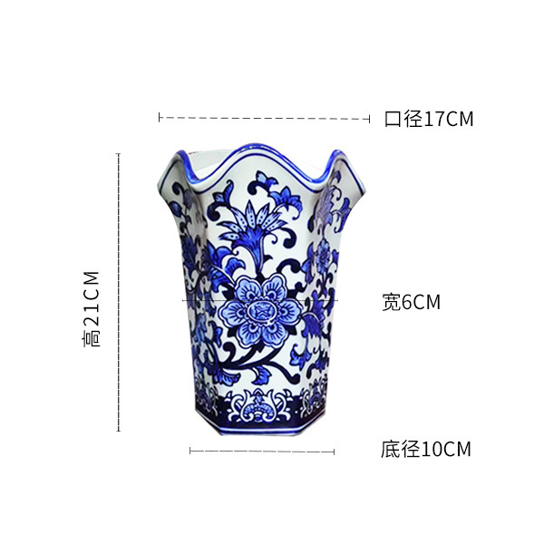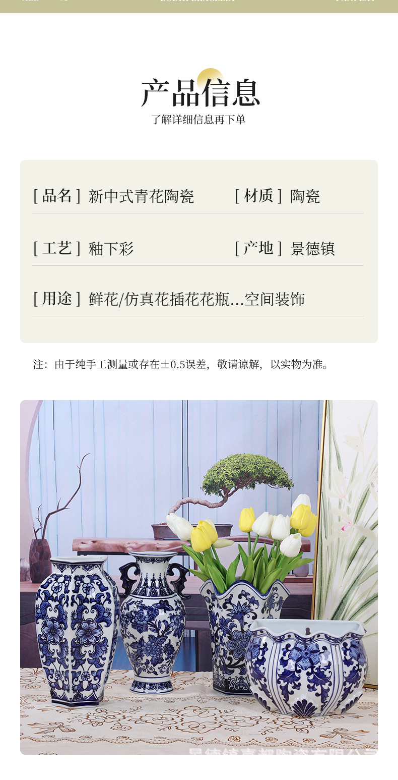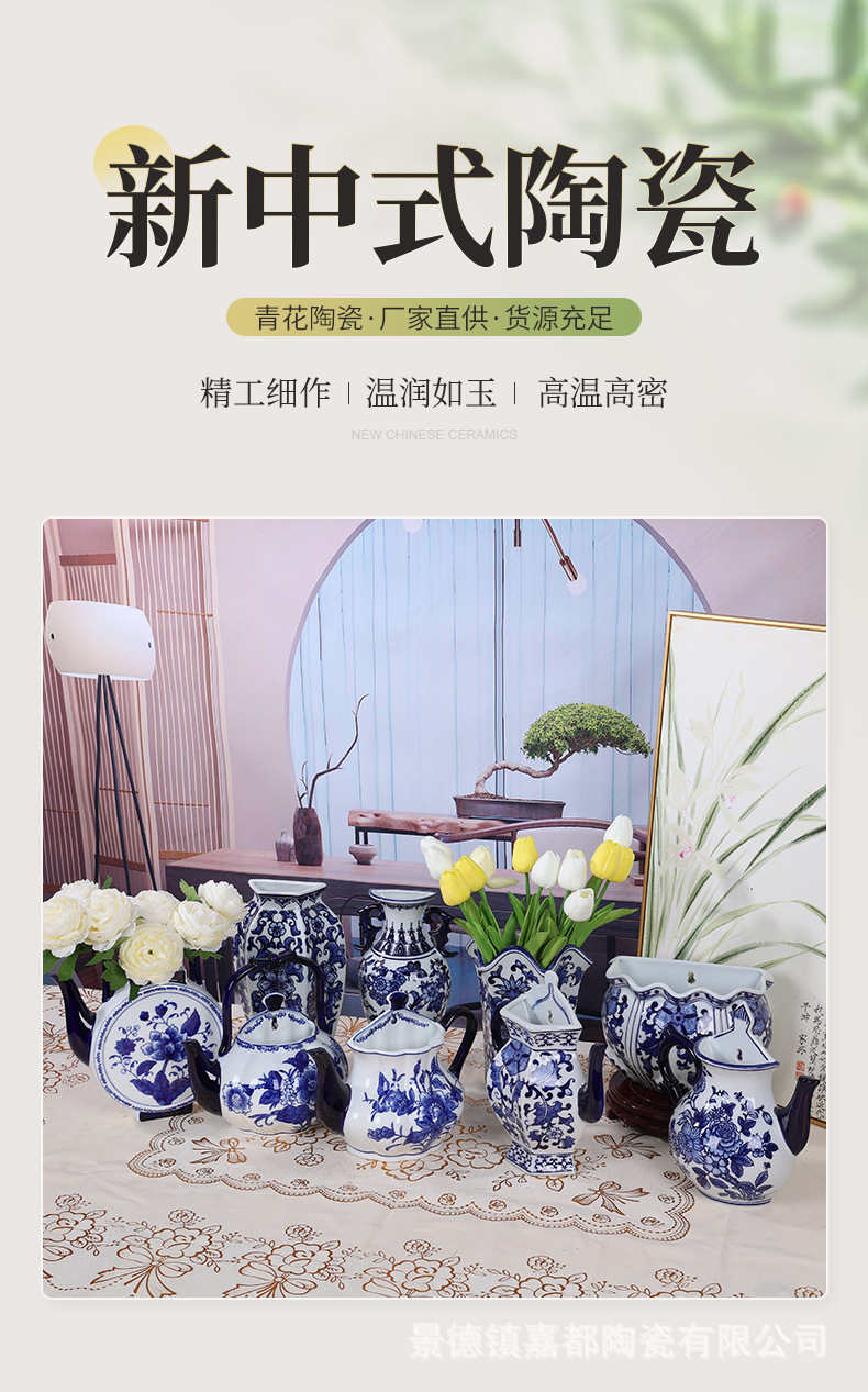 Jingdezhen 새로운 중국 스타일 세라믹 파란색과 흰색 도자기 벽걸이 꽃병 장식품 거실 홈 가구 부드러운 장식 세라믹 꽃병