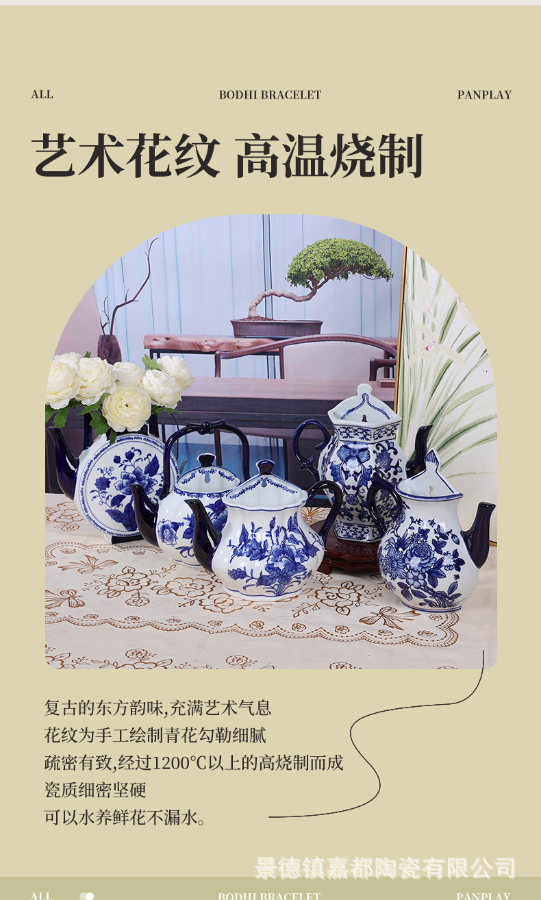 Jingdezhen 새로운 중국 스타일 세라믹 파란색과 흰색 도자기 벽걸이 꽃병 장식품 거실 홈 가구 부드러운 장식 세라믹 꽃병스토어 가기