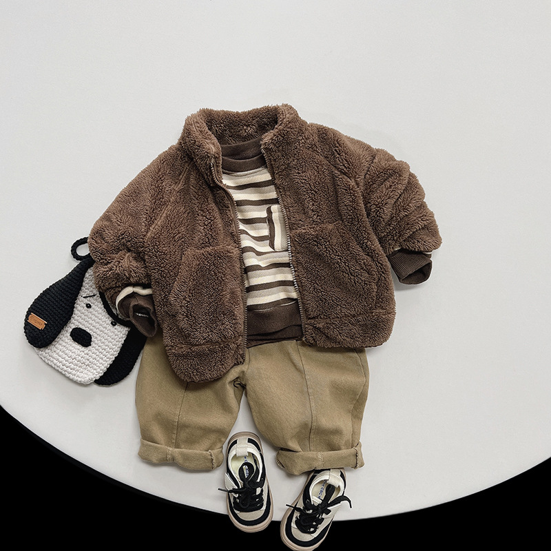 소년과 소녀 플러시 코트 2025 겨울 새로운 스타일 중소형 어린이 라이트 탑 베이비 한국 스타일 포레스트 스타일 다용도 아동복스토어 가기