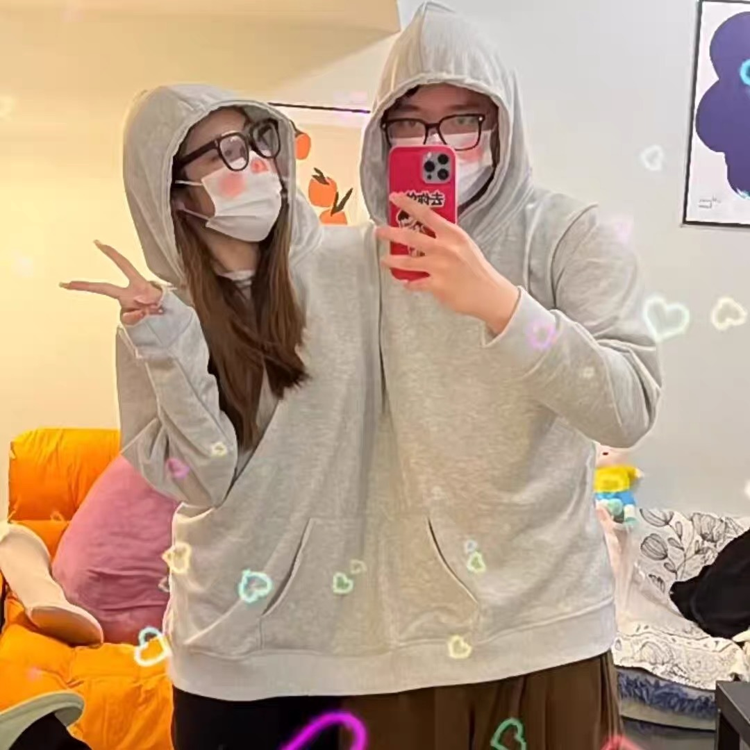 두 머리 재미 스웨터 얇은 친밀한 더블 스웨터 캥거루 커플의 한 몸 단색 후드 홈 의류스토어 가기