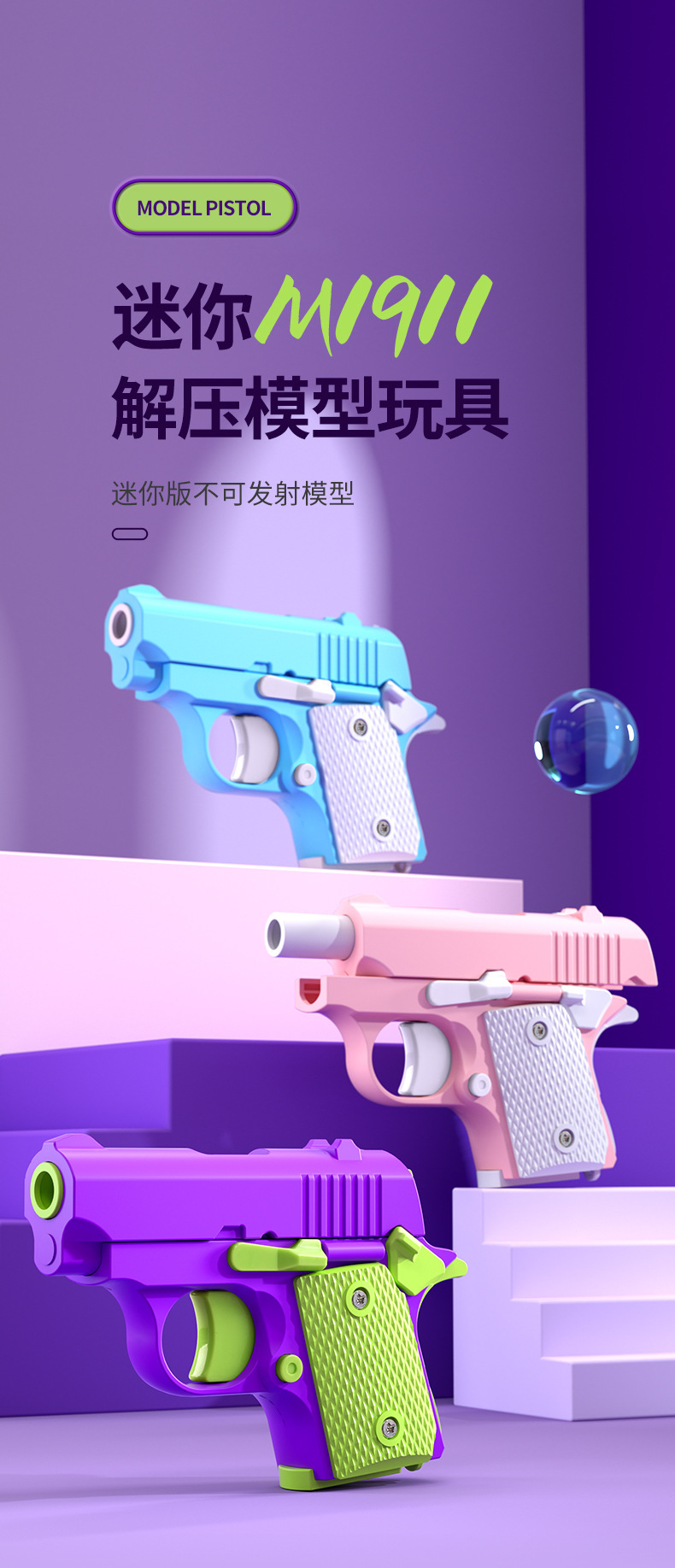 중력 새끼 1911 장난감 총 3D 인쇄 블로우백 초기 번호 기계 어린이 감압 장난감 무 칼 무 총스토어 가기