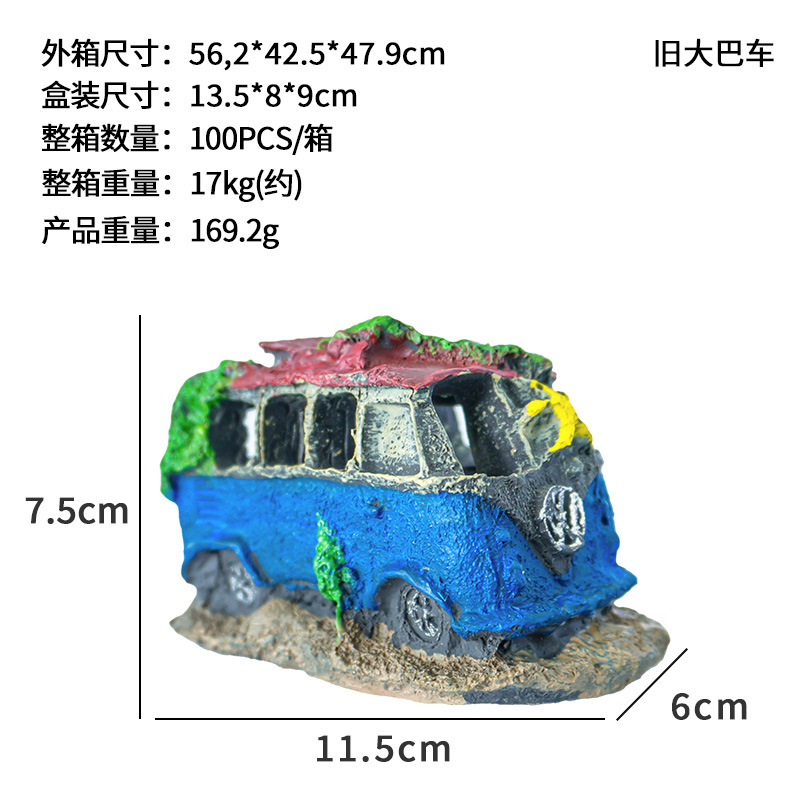 수족관 장식 자동차 난파선 물고기 탱크 조경 수지 공예 새로운 회피 장식품 오래된 버스 승용차