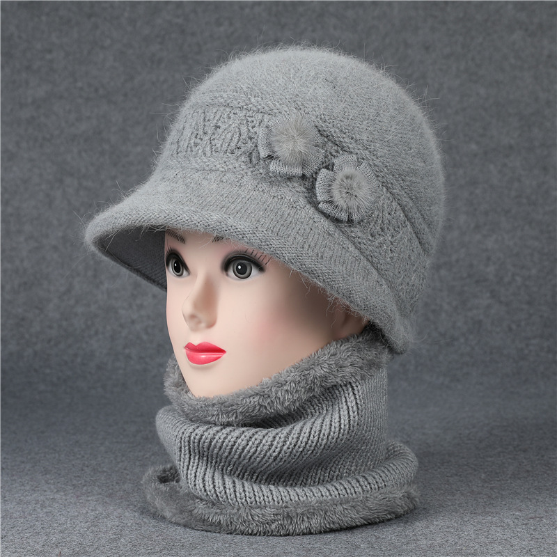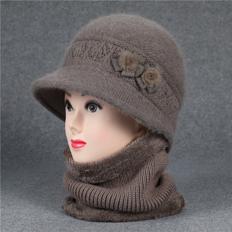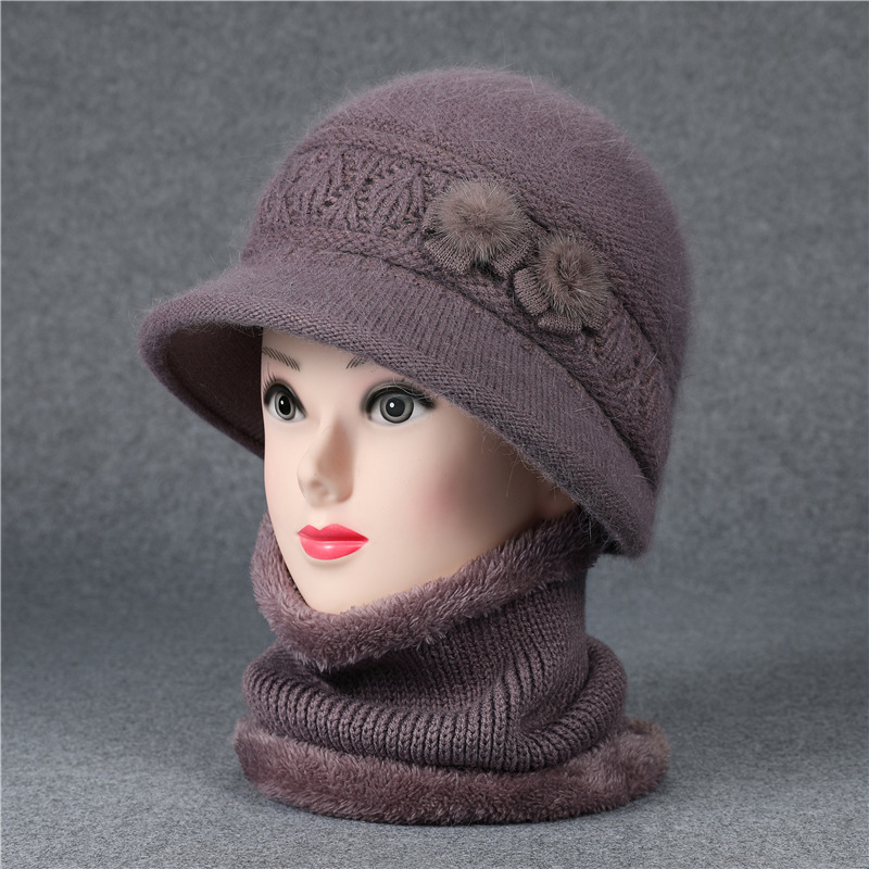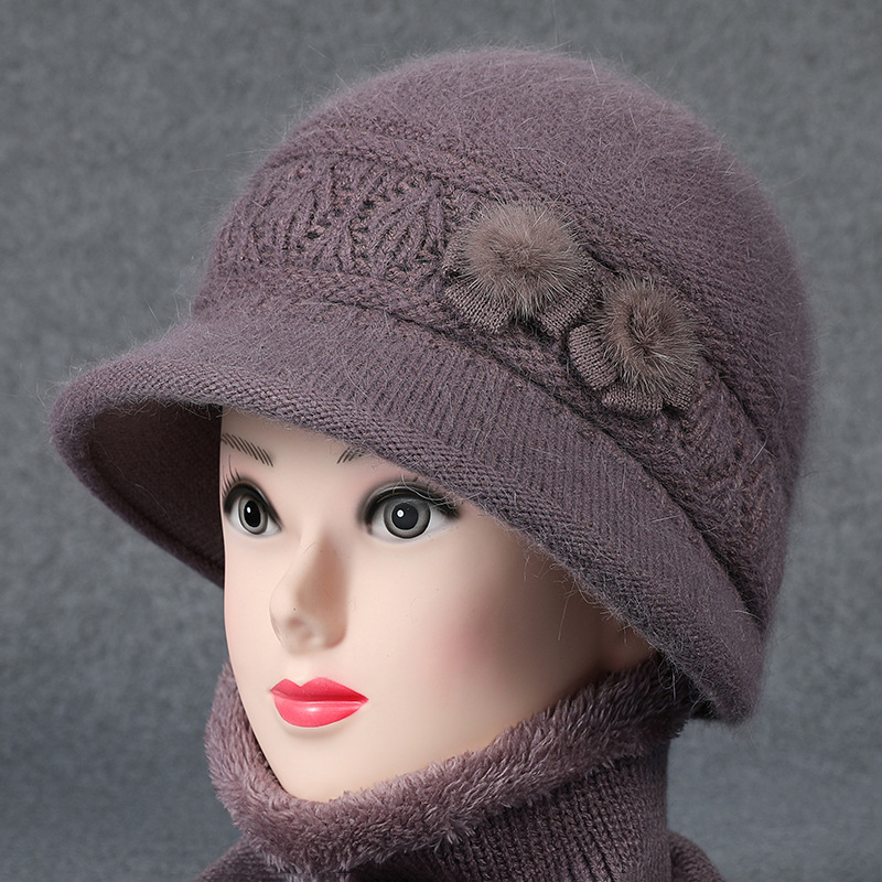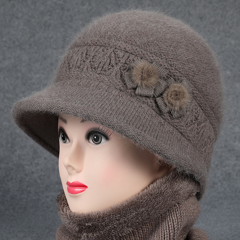 겨울 모자 여성 어머니 중년 및 노인 토끼 울 니트 따뜻한 분지 모자 노인 할머니 기모 아내 면 모자스토어 가기
