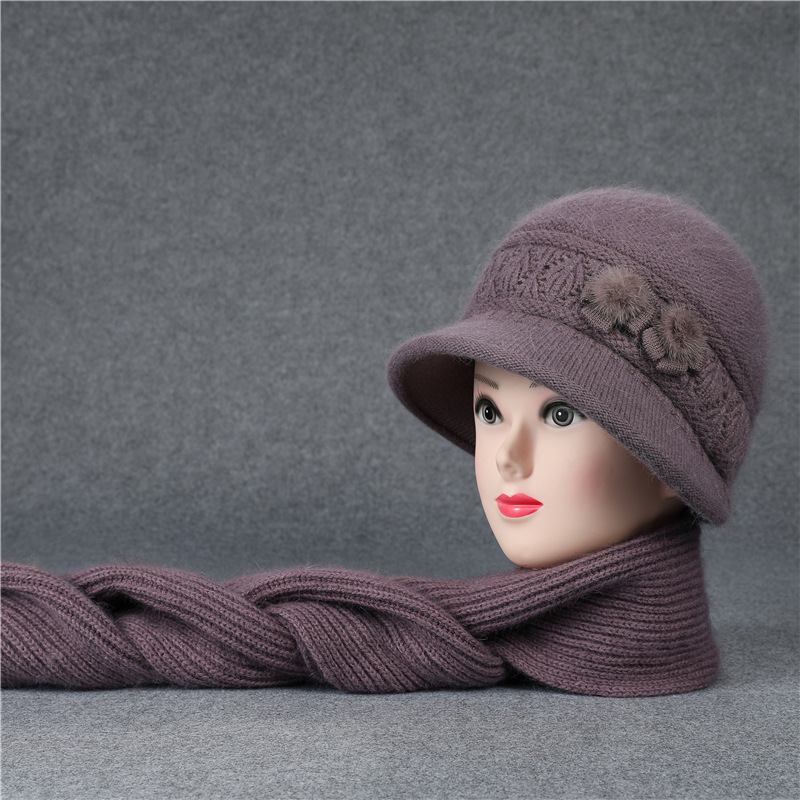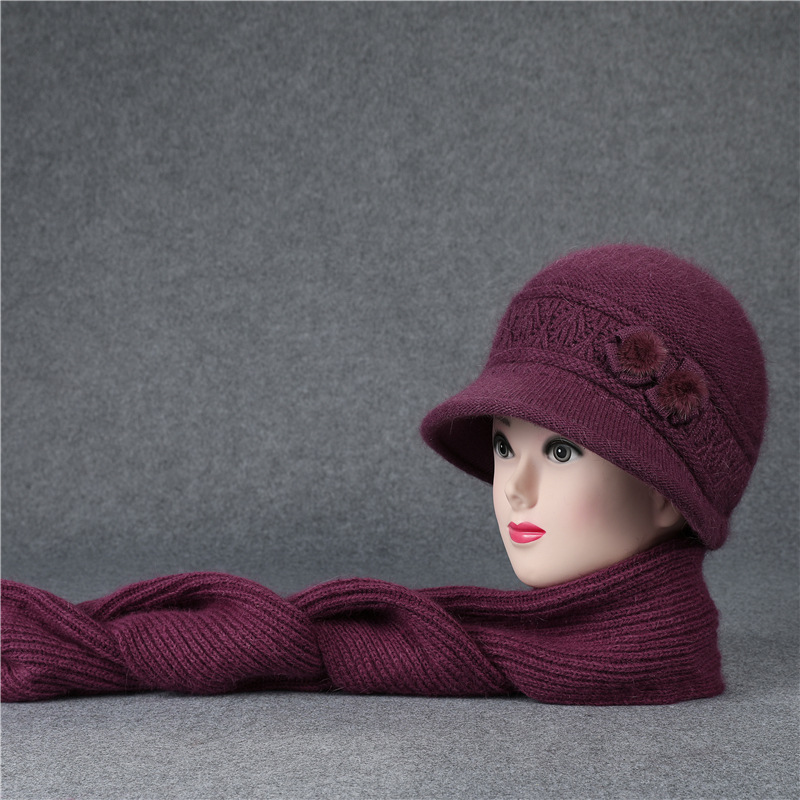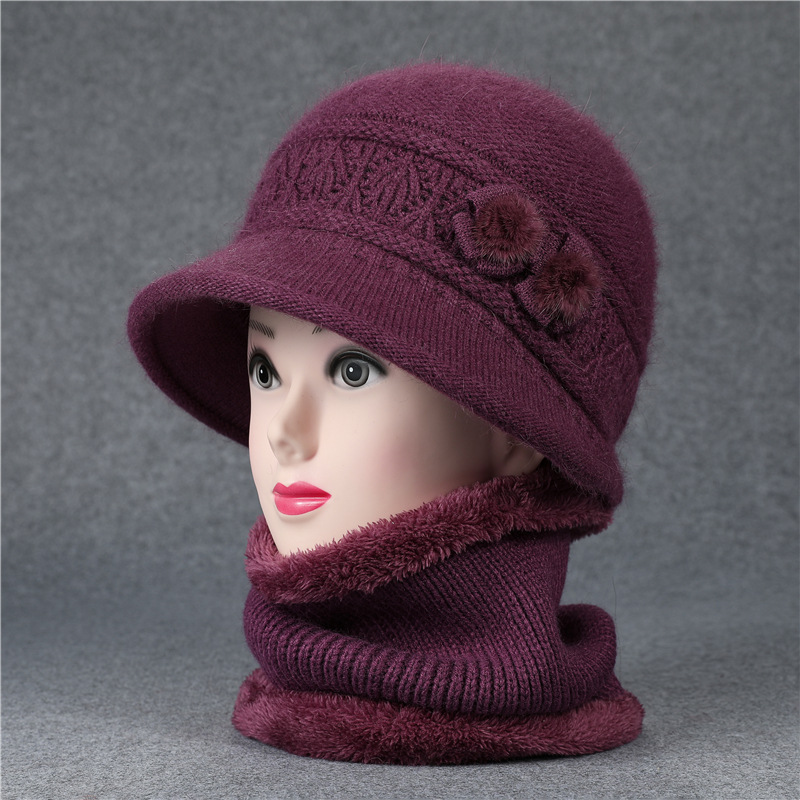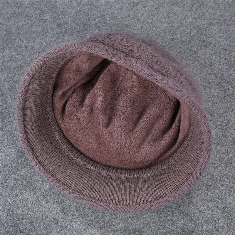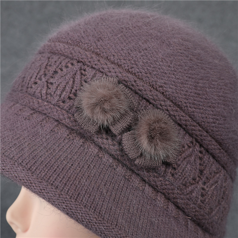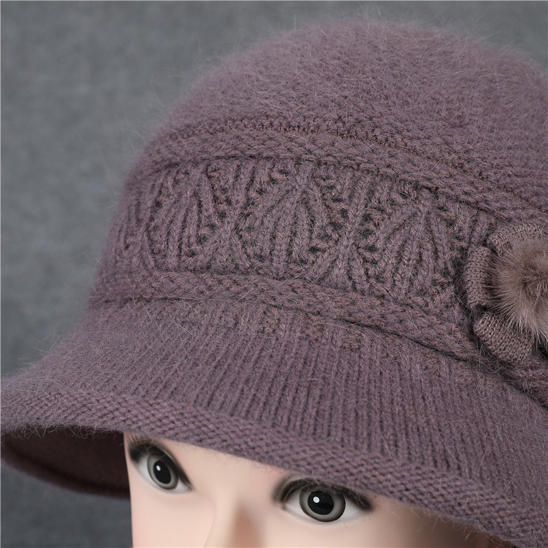 겨울 모자 여성 어머니 중년 및 노인 토끼 울 니트 따뜻한 분지 모자 노인 할머니 기모 아내 면 모자