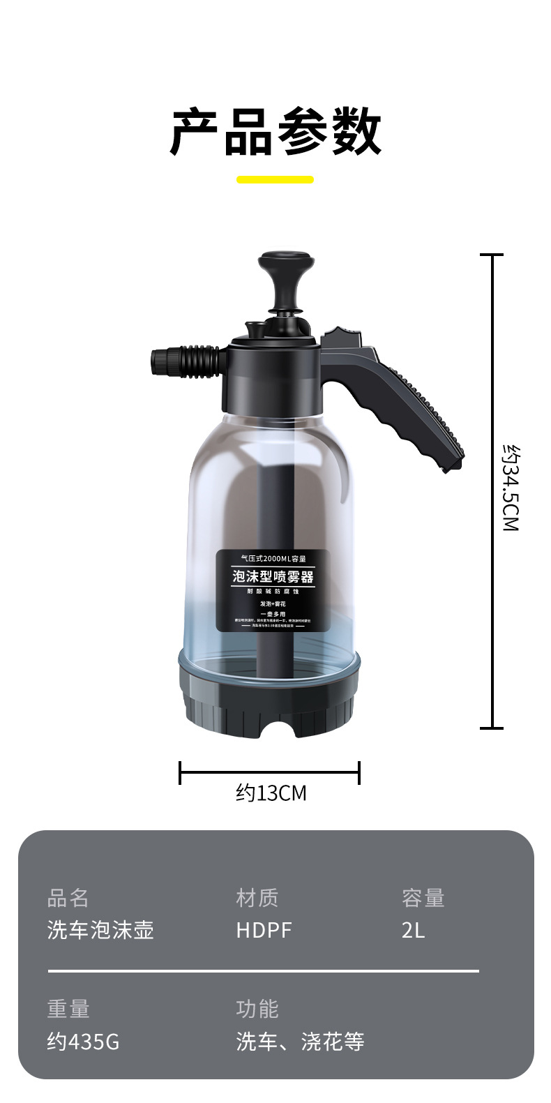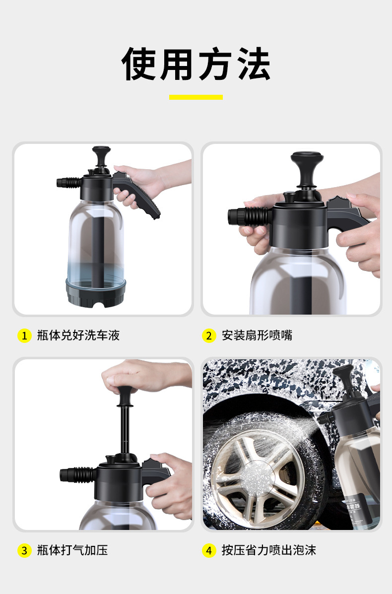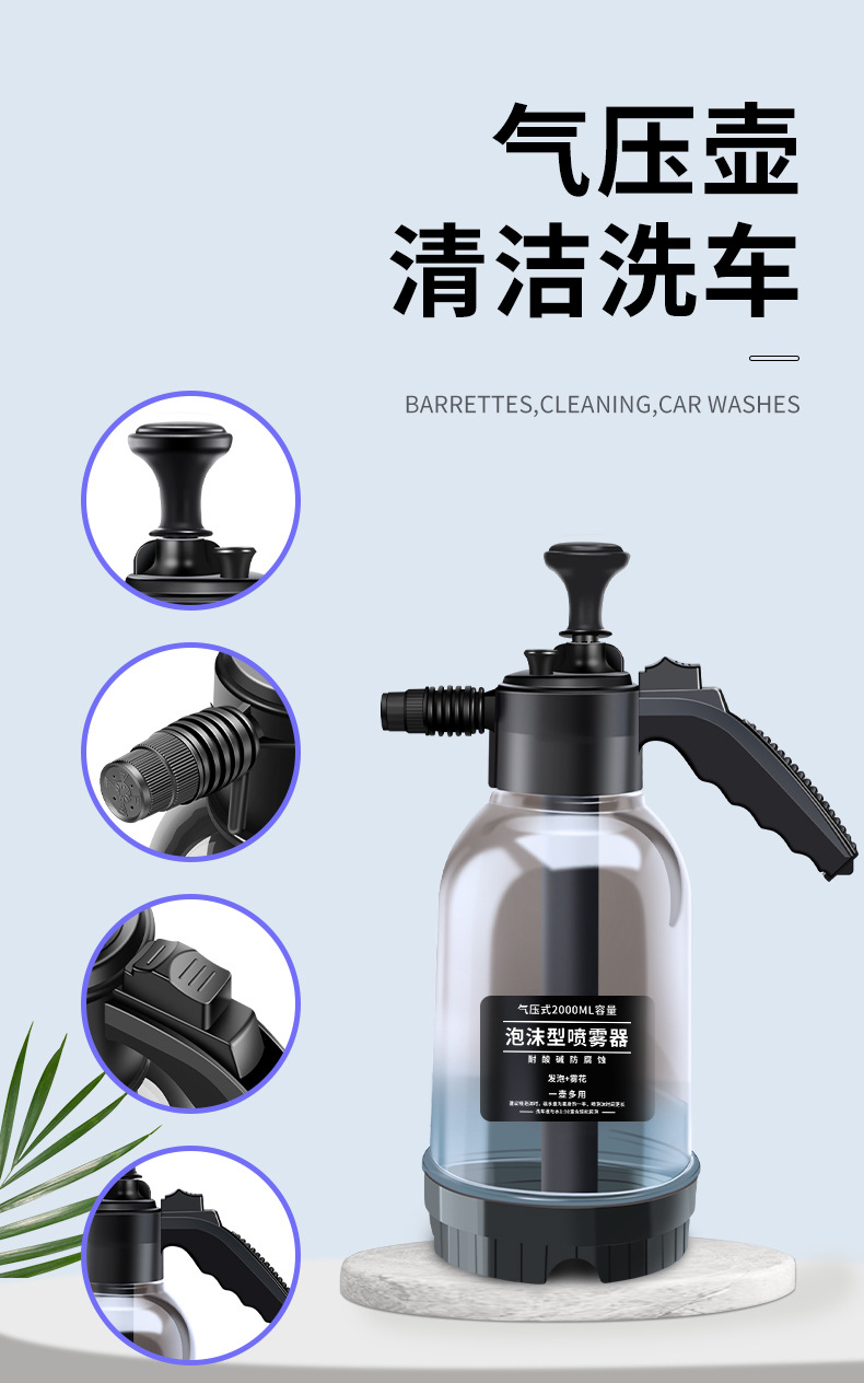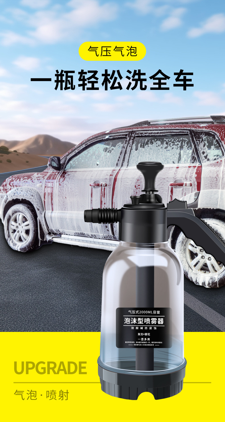 가정용 휴대용 세차 거품 물뿌리개 2L 공기 압력 스프레이 거품 냄비 급수 정원 물뿌리개 공장 도매스토어 가기