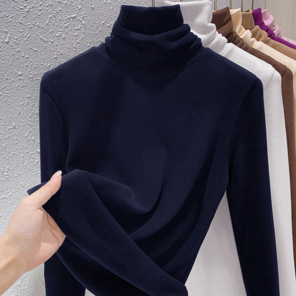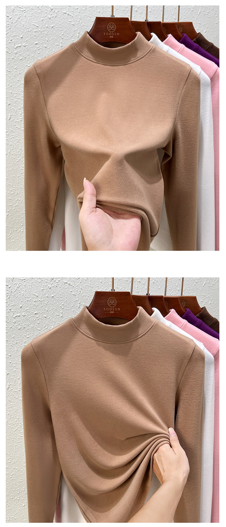 • 매력 살구색 하프 터틀넥