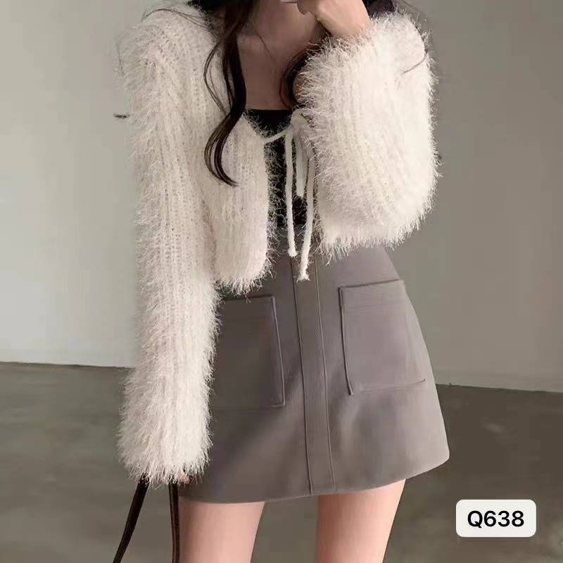 한국 스타일 새로운 우아한 레이스 업 스웨터 코트 여성의 가을과 겨울 서양 스타일 틈새 짧은 니트 스웨터 니트 탑
