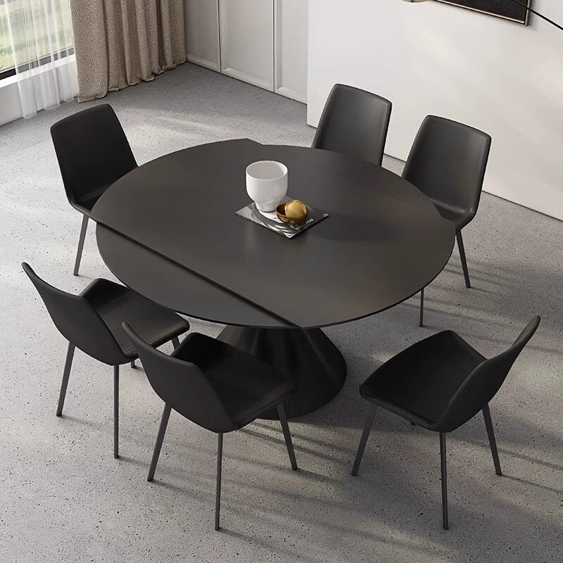 意式黑色岩板可变圆桌现代简约家用小户型方圆两用旋转伸缩圆餐桌