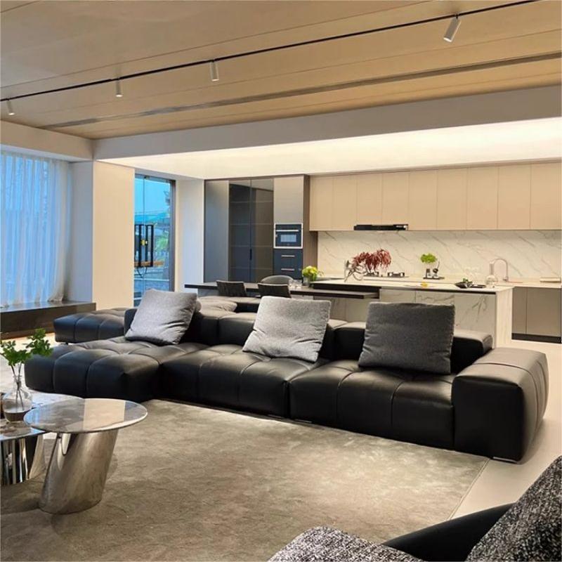 意式极简像素真皮沙发客厅黑色头层牛皮贵妃转角皮艺佛山沙发组合