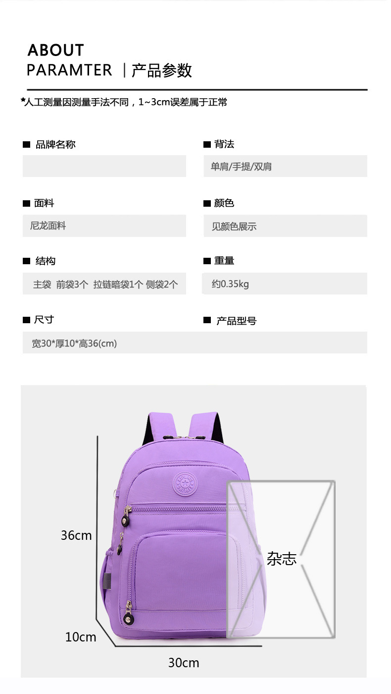 여성용 캐주얼 학생 가방 다층 대용량 심플 여행 가방 2025 신상 경량 옥스포드 천 백팩스토어 가기