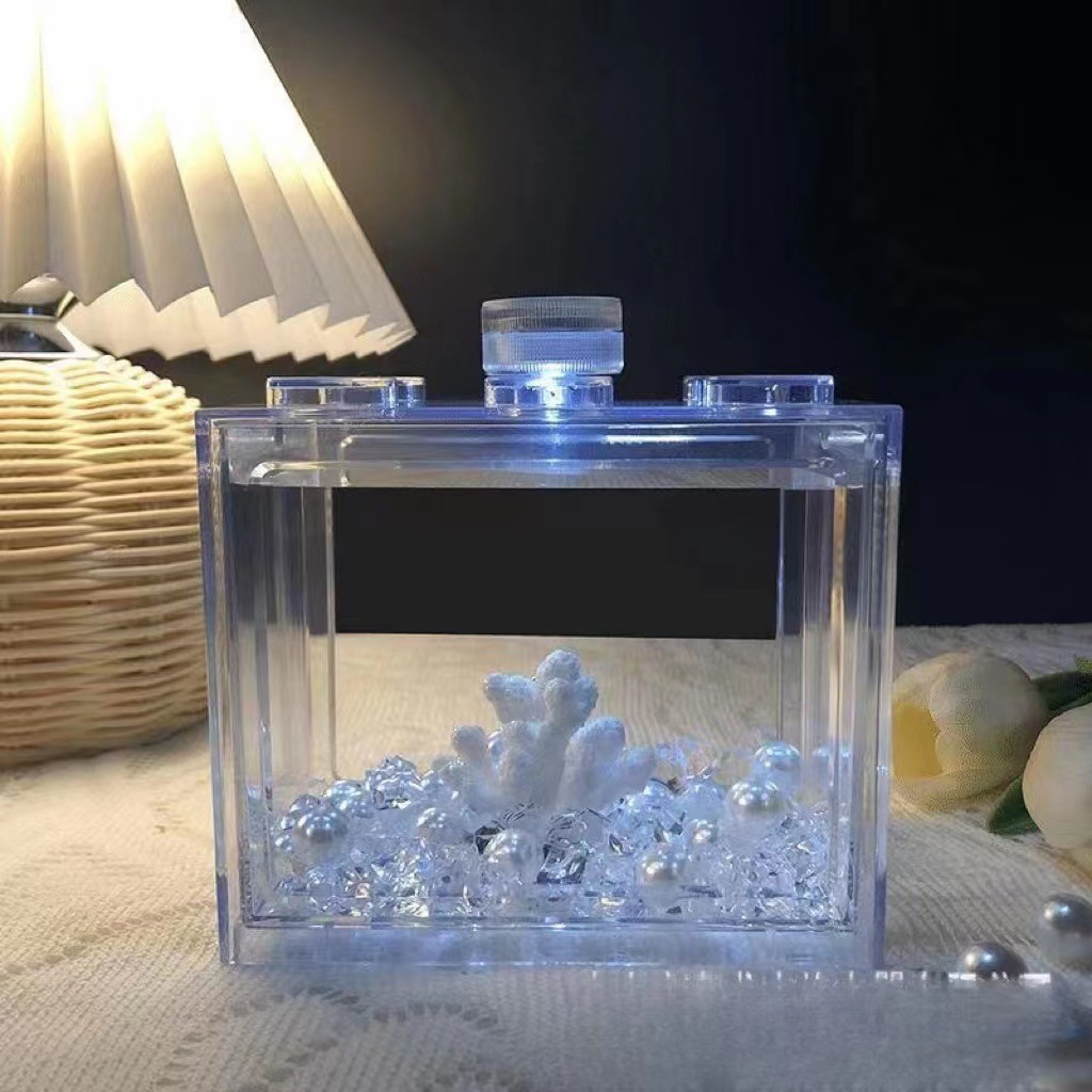 타이 파이팅 피쉬 빌딩 블록 어항 마이크로 풍경 미니 거북이 HD 버킷 어항 데스크탑 소형 어항 도매