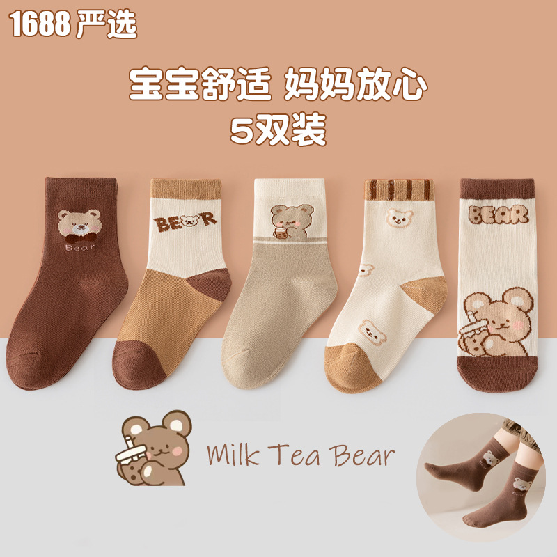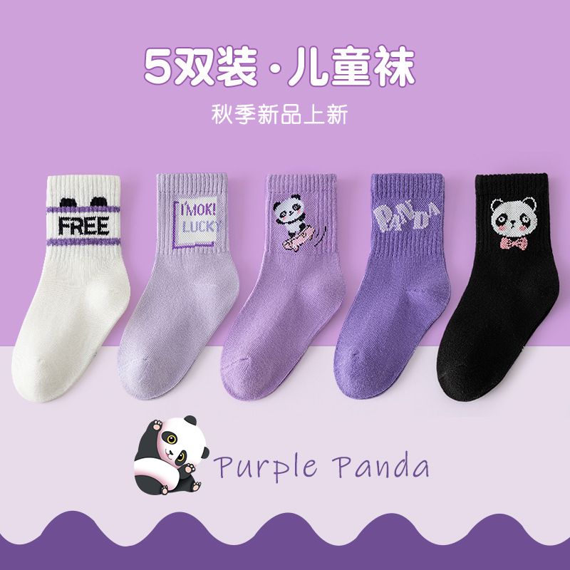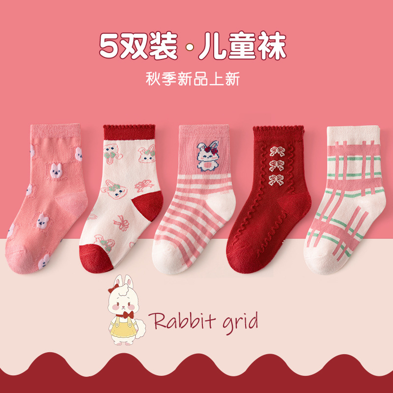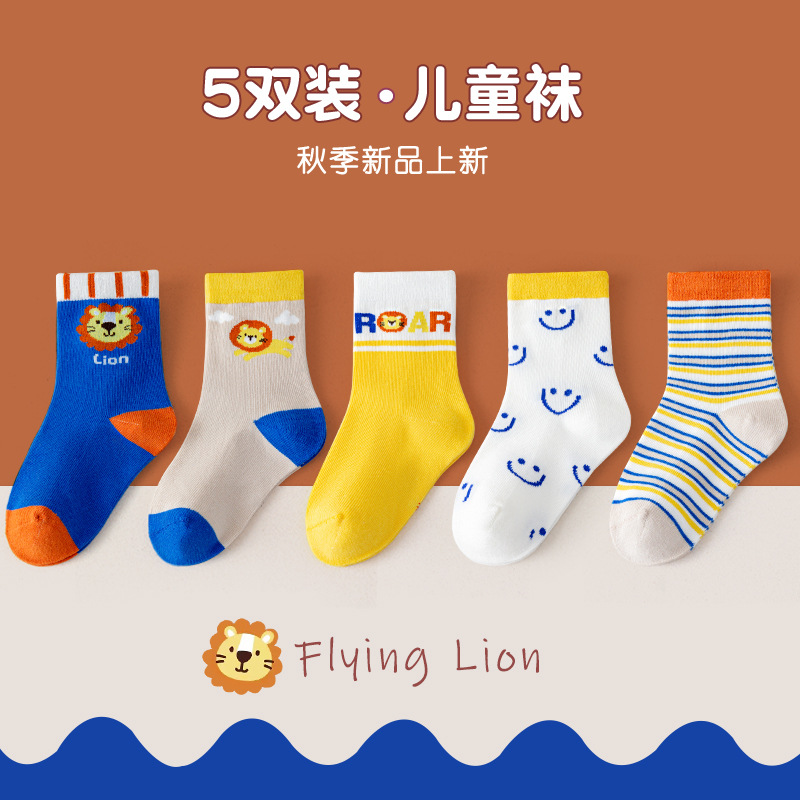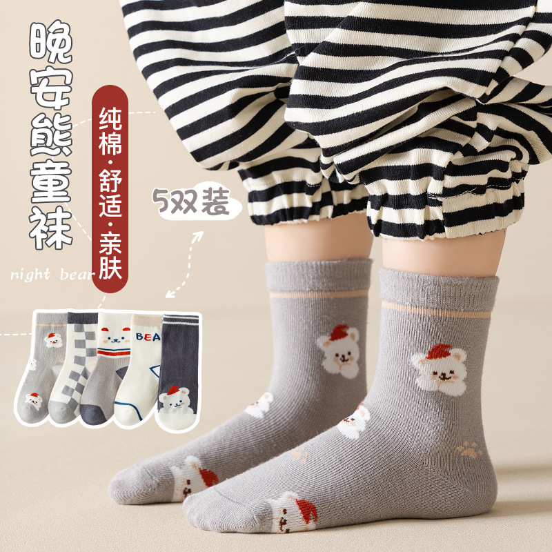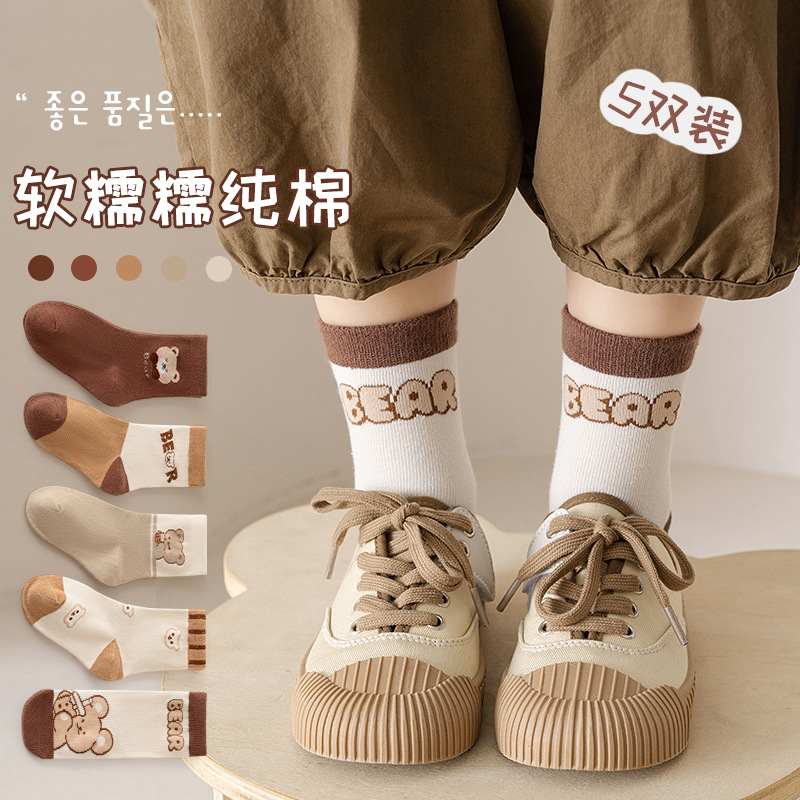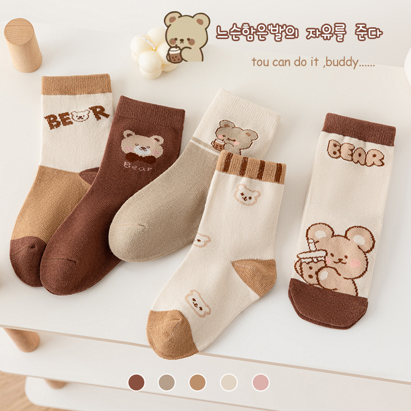 5 쌍 어린이 양말 가을과 겨울 소년과 소녀 면 양말 학생 양말 중간 튜브 양말 봄과 가을 만화 컬렉션 아기 양말