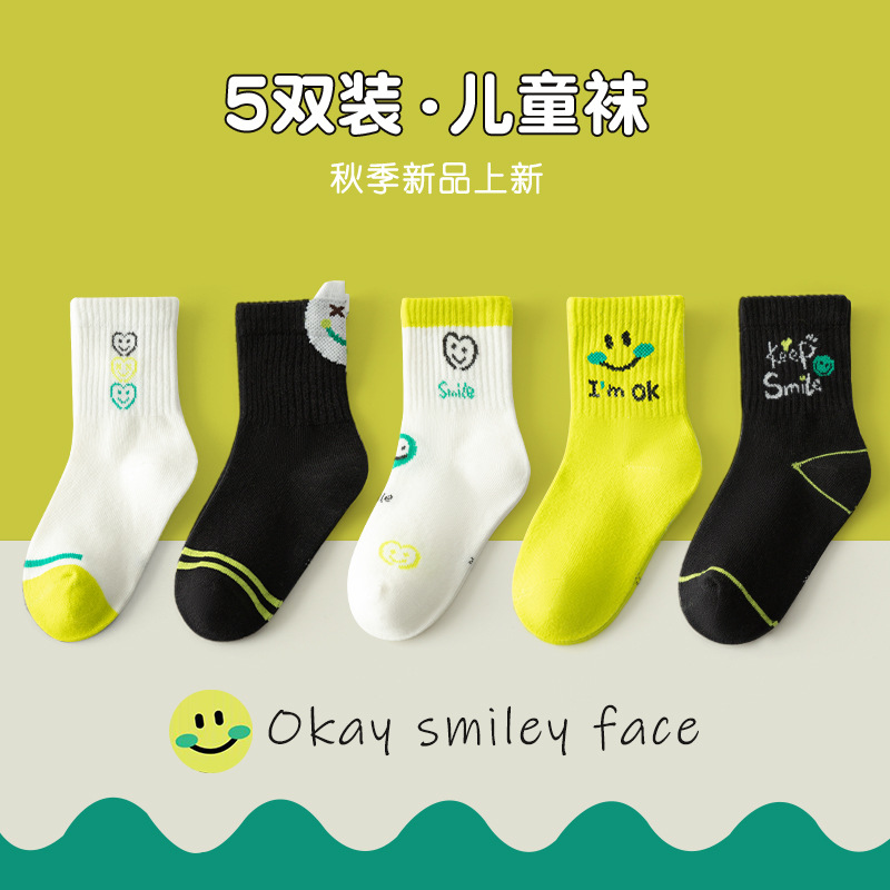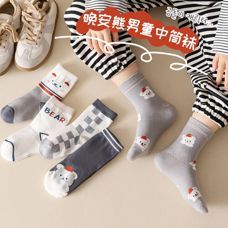 5 쌍 어린이 양말 가을과 겨울 소년과 소녀 면 양말 학생 양말 중간 튜브 양말 봄과 가을 만화 컬렉션 아기 양말스토어 가기