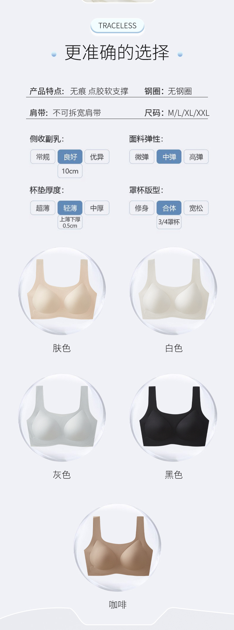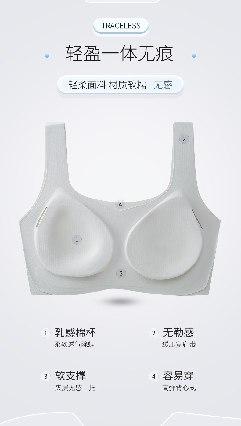 신상품 추적 없는 테두리 없는 조끼 속옷 여성용 푸시 업 소프트 지원 처짐 방지 통기성 얇은 아름다운 등 브래지어스토어 가기