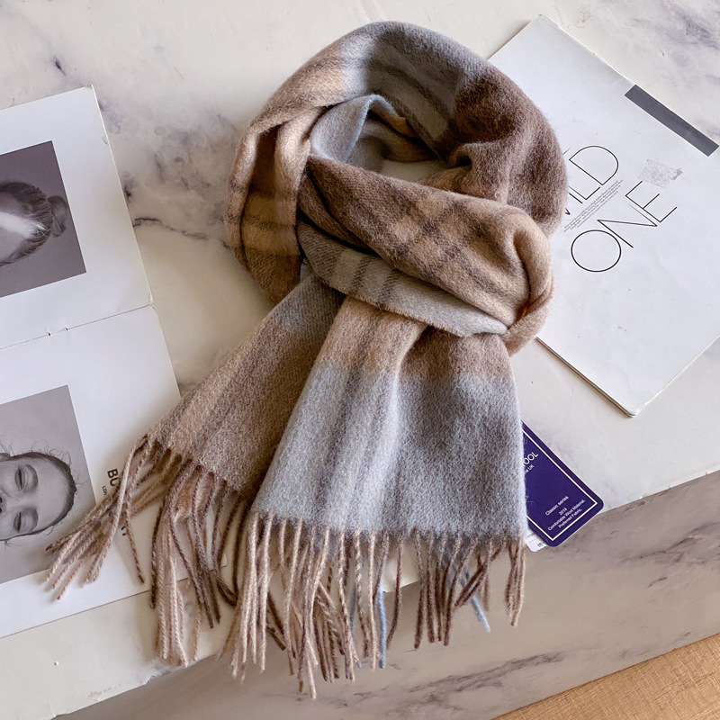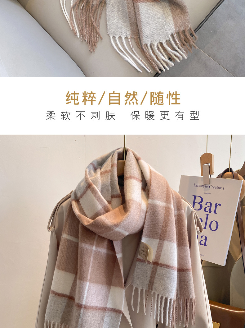 2025 새로운 양모 따뜻한 스카프 여성 가을, 겨울 색상 차단 격자 무늬 스카프 긴 술 스카프 라이트 럭셔리 하이 엔드스토어 가기